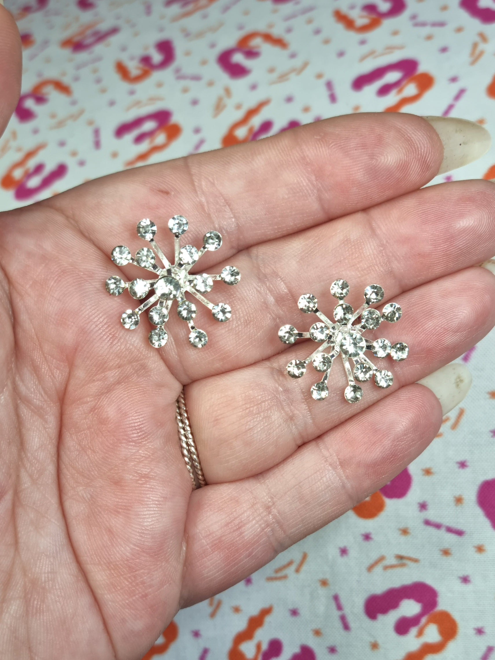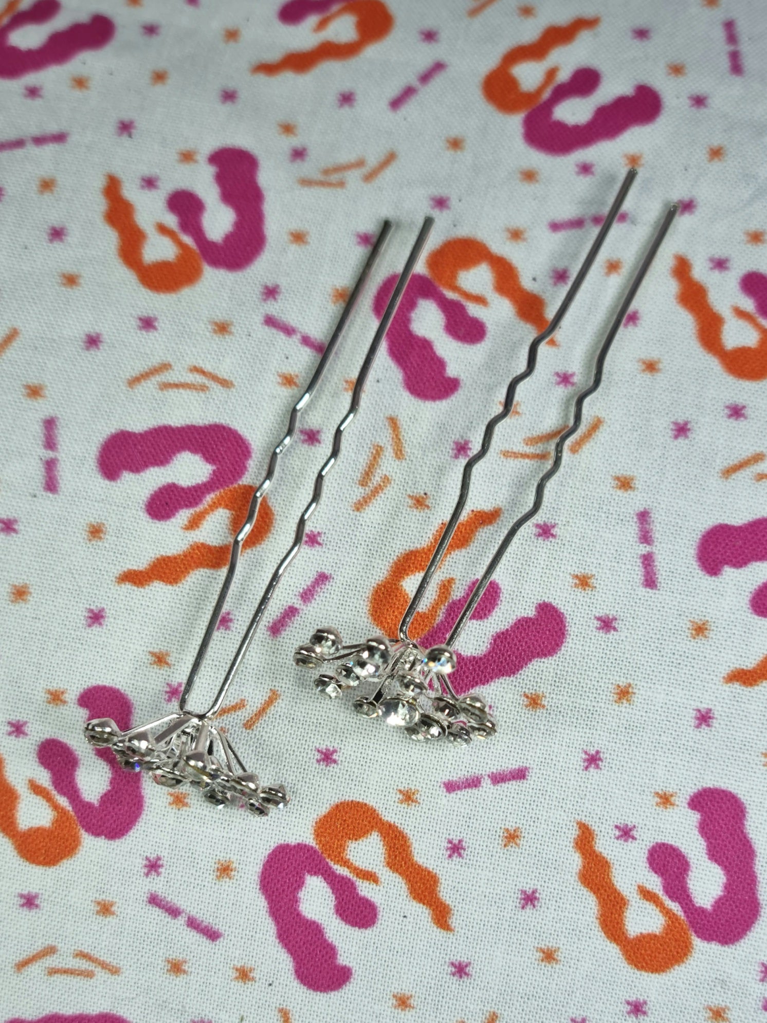 These gorgeous silver pins are modelled after a true vintage hair pin design from the 50s,and would look gorgeous decorating an updo for just a touch of glam. They'd be an excellent addition to a formal or bridal look, or a nice way to accessorise your bridesmaids with slightly dainty but still vintage inspired accessories, and we can't wait to see what you do with them.