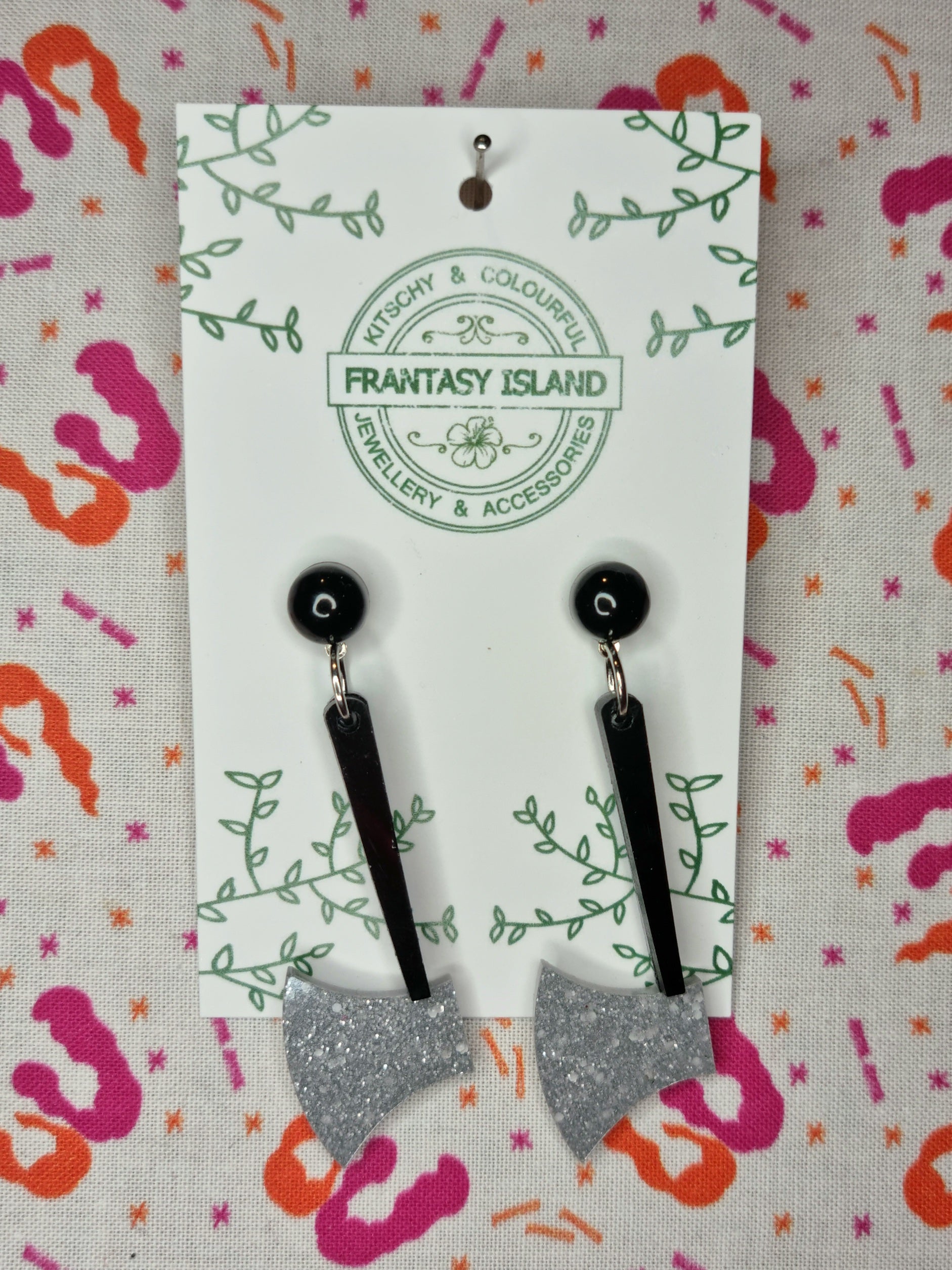 These axes are made from swirly shimmering metallic silver and black resin, and are truly perfect for any occasion