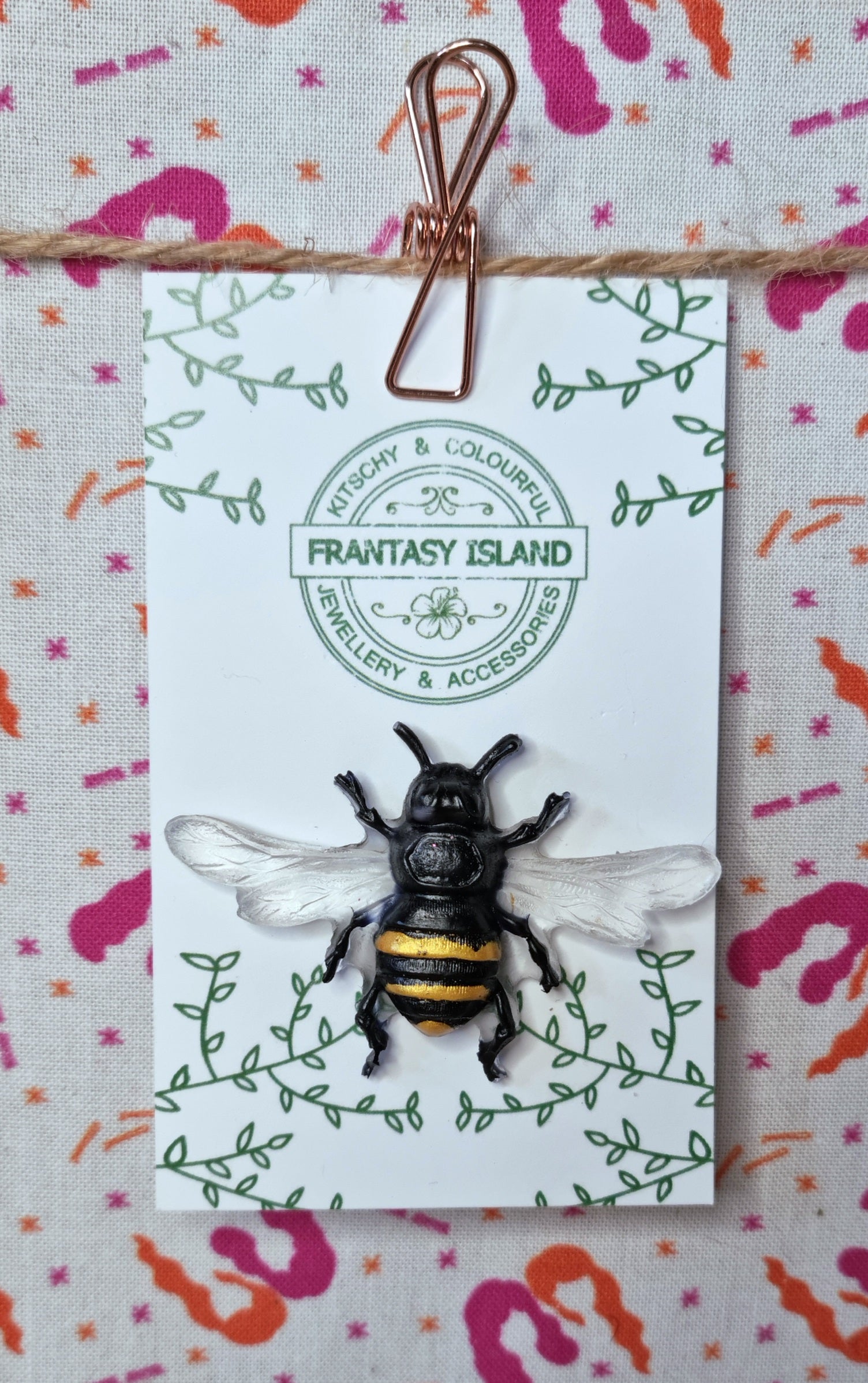 These bees are invidually hand painted with resin and metallic pigments so their stripes may differ slightly brooch to brooch, but that's the beauty of handmade!