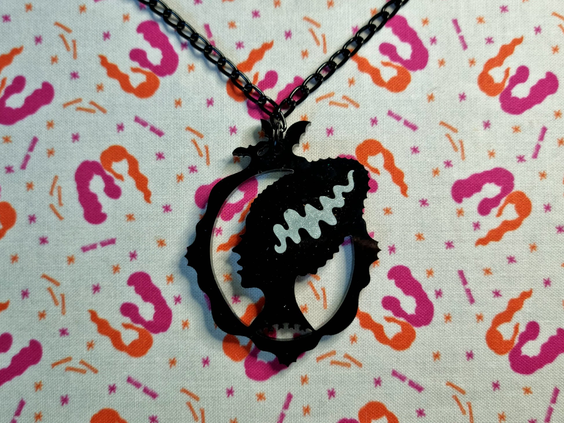 Black & White Bride of Frankenstein Silhouette Necklace