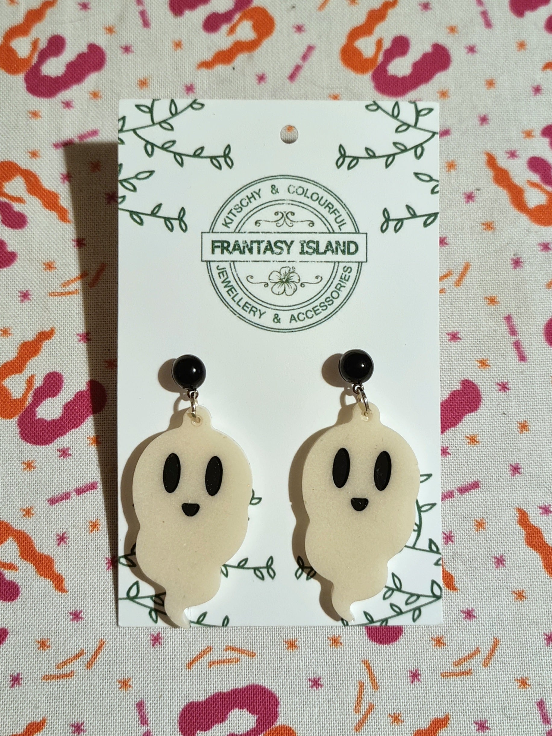 These earrings are a little spooky and utterly adorable, with a mix of glossy black and ivory resin - Perfect for any occasion.