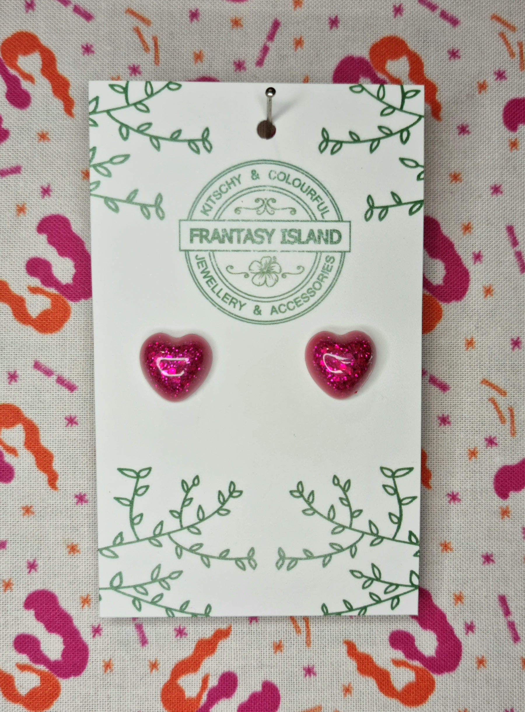 These cute earrings have an exaggerated heart shape, with red glitter in red shimmery resin - Perfect for any occasion.