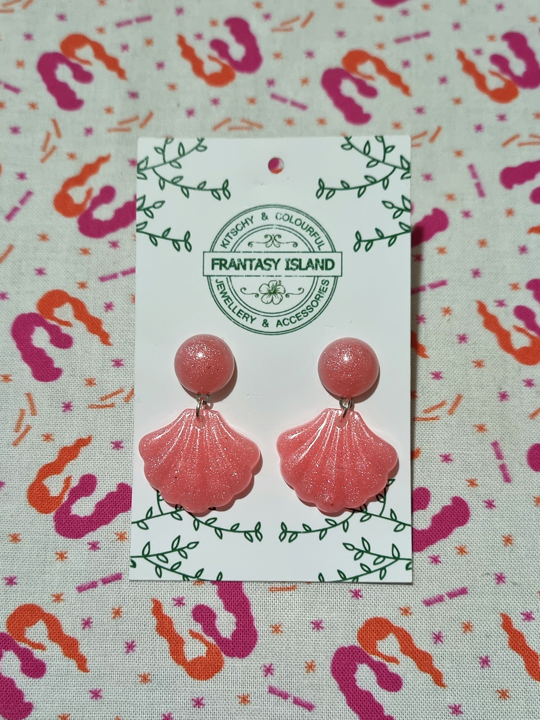 These glossy pink baroque shell earrings have a classic retro shape, with soft shimmering pigments set in a candy pink resin - Perfect for any occasion.