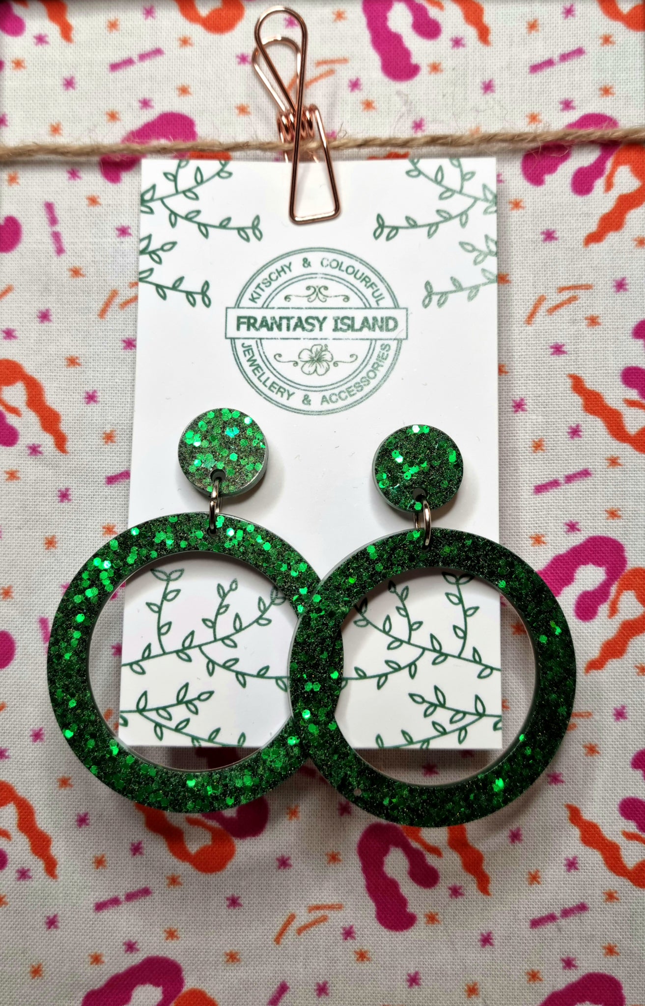 These emerald green hoops are about as glitzy as they come, with a classic retro shape and a mix of rich deep emerald glitters - Perfect for any occasion.