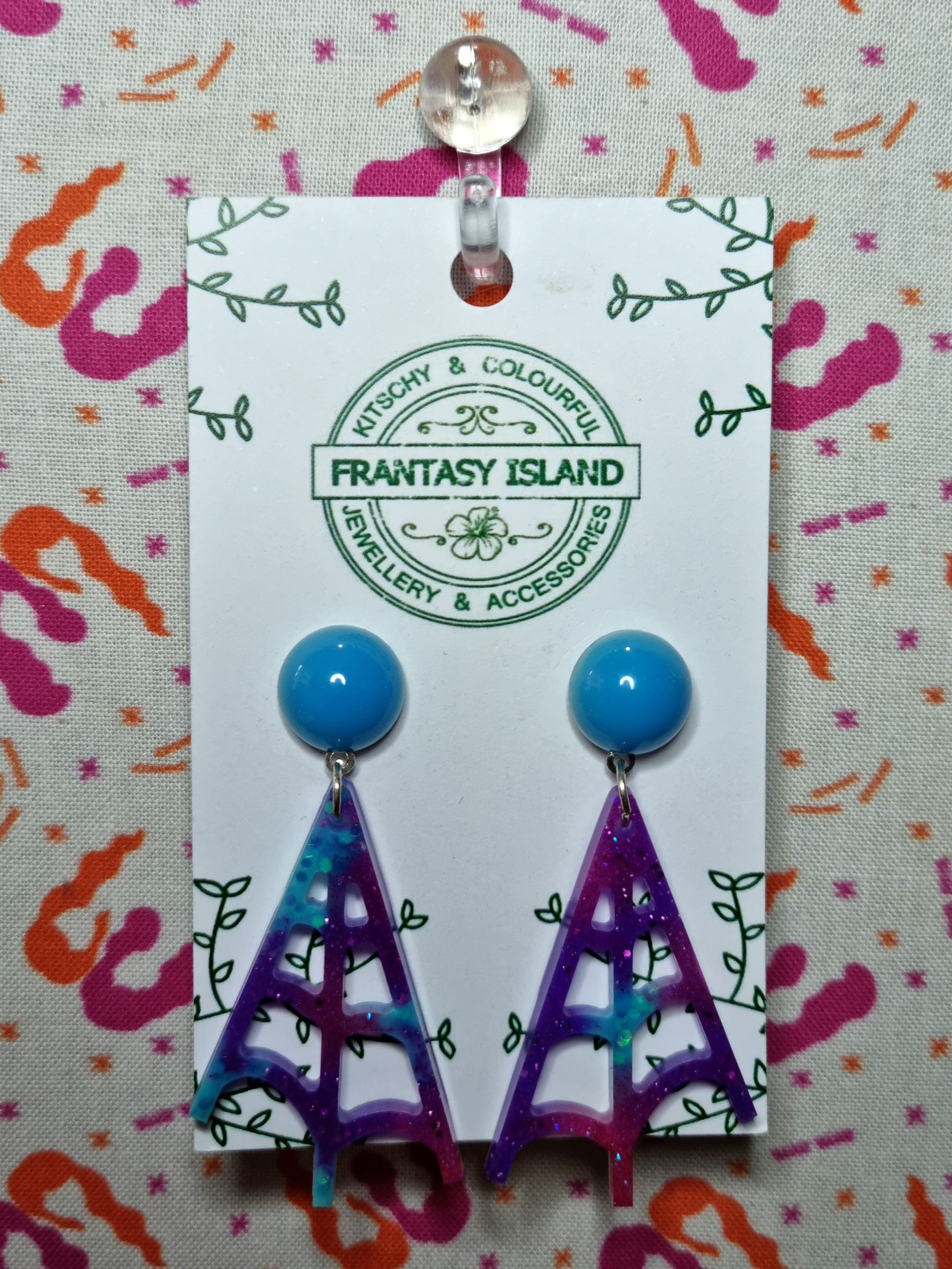 These glossy sparkly spiderweb earrings full of swirling cosmic glitters are spooky and spectacular - Perfect for any occasion.