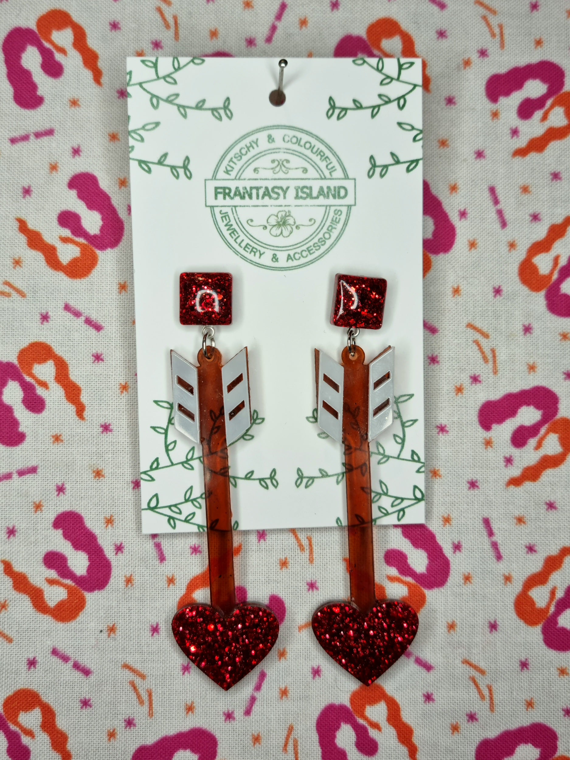 Now, we know we're good at glamorous sparkly things, but we're also really good at quirky sparkly nonsense, and these cupid's arrow earrings are exactly that - Sparkly nonsense, perfect for any occasion