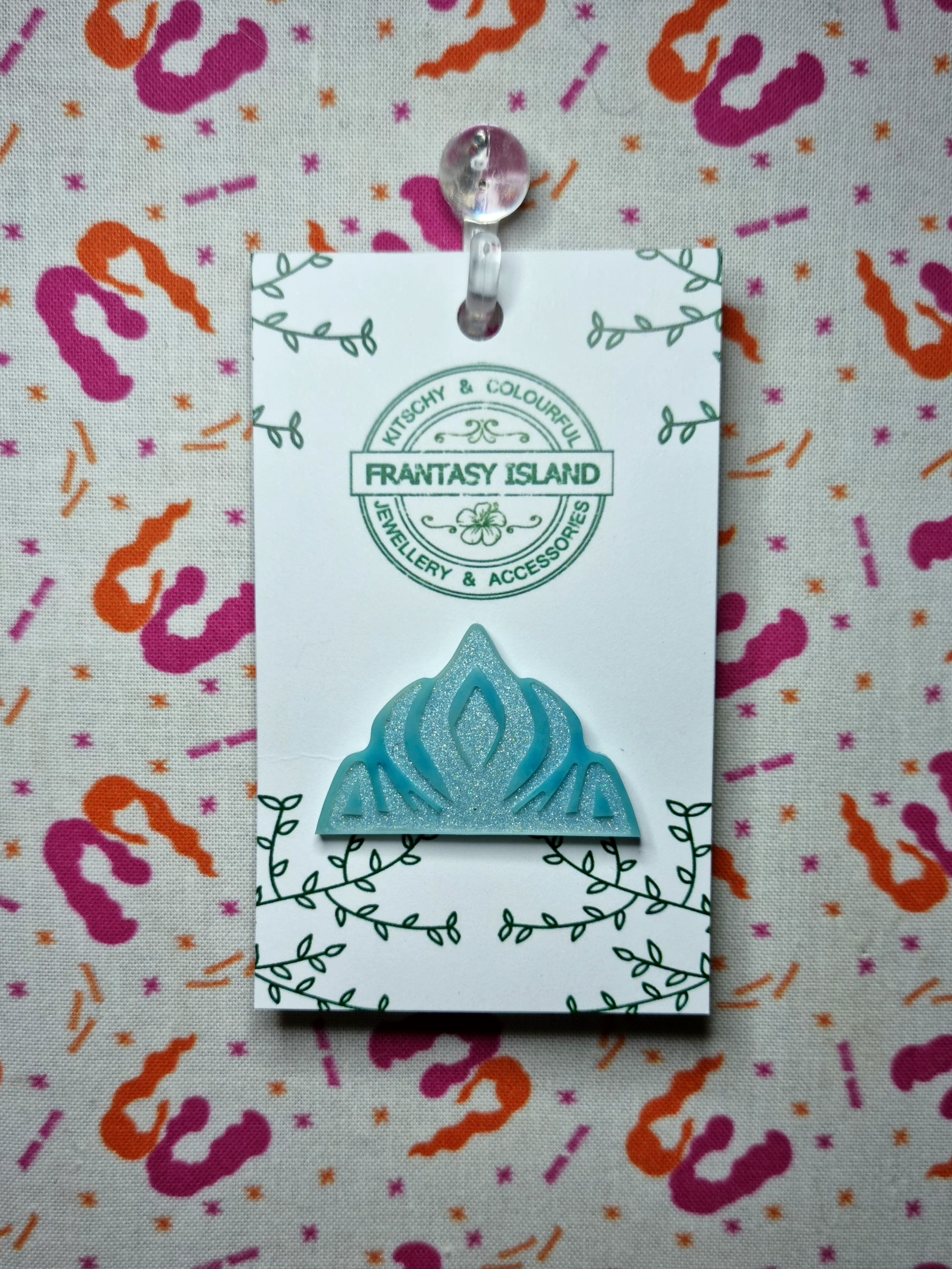 Bring a touch of Arendelle to your wardrobe with this magical tiara pin! Crafted from glittery blue resin, this pin is the perfect addition to a Disneybound, or to remind Jenny from accounts to just let it go when you submit your next expense request without filling out the form correctly. Let it go Jenny, and let this pin become part of your wardrobe!