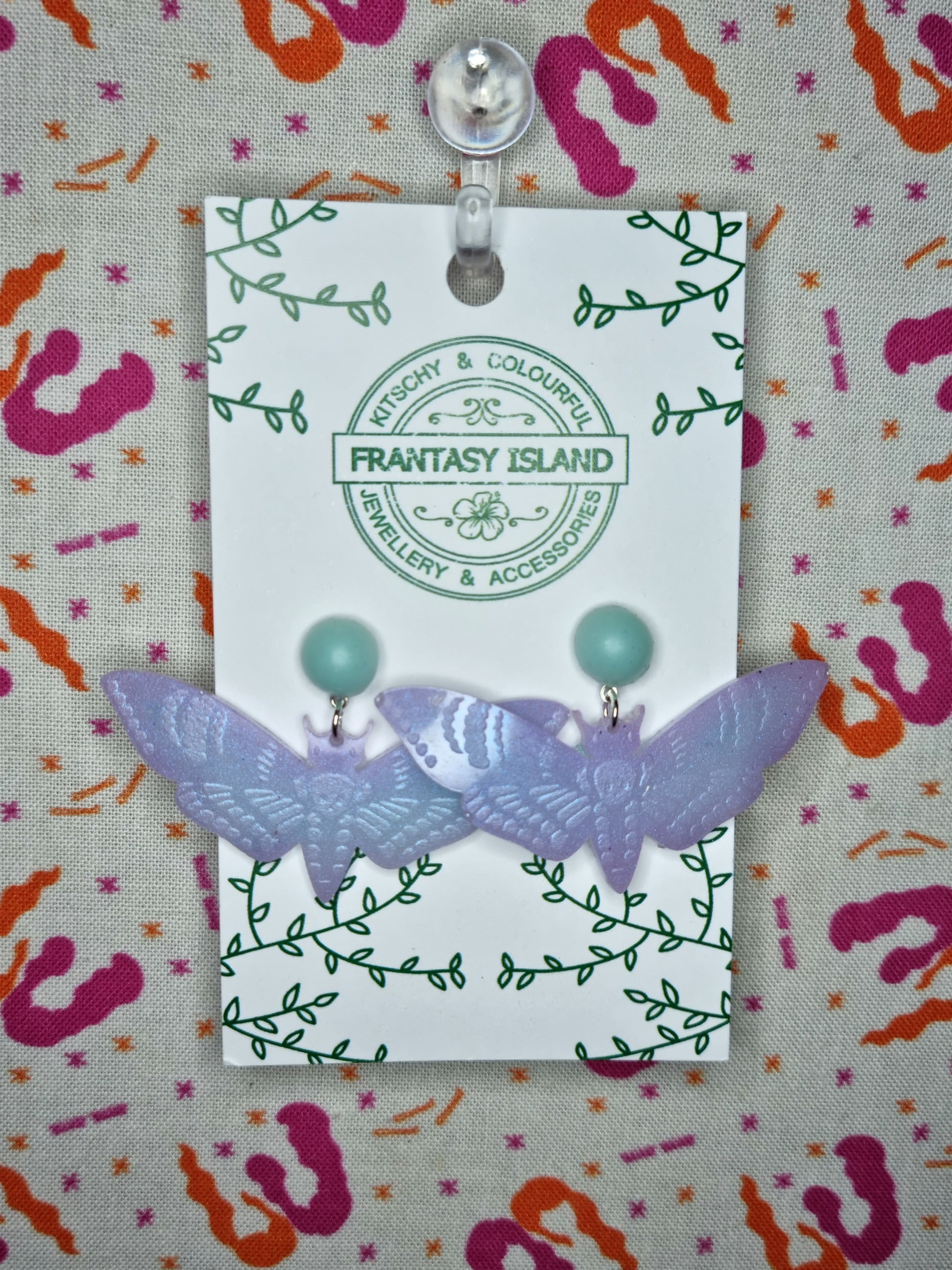 These earrings perfectly match our Lilac and Mint Death's Head Moth Necklace, for a pastel perfect coordinated set.