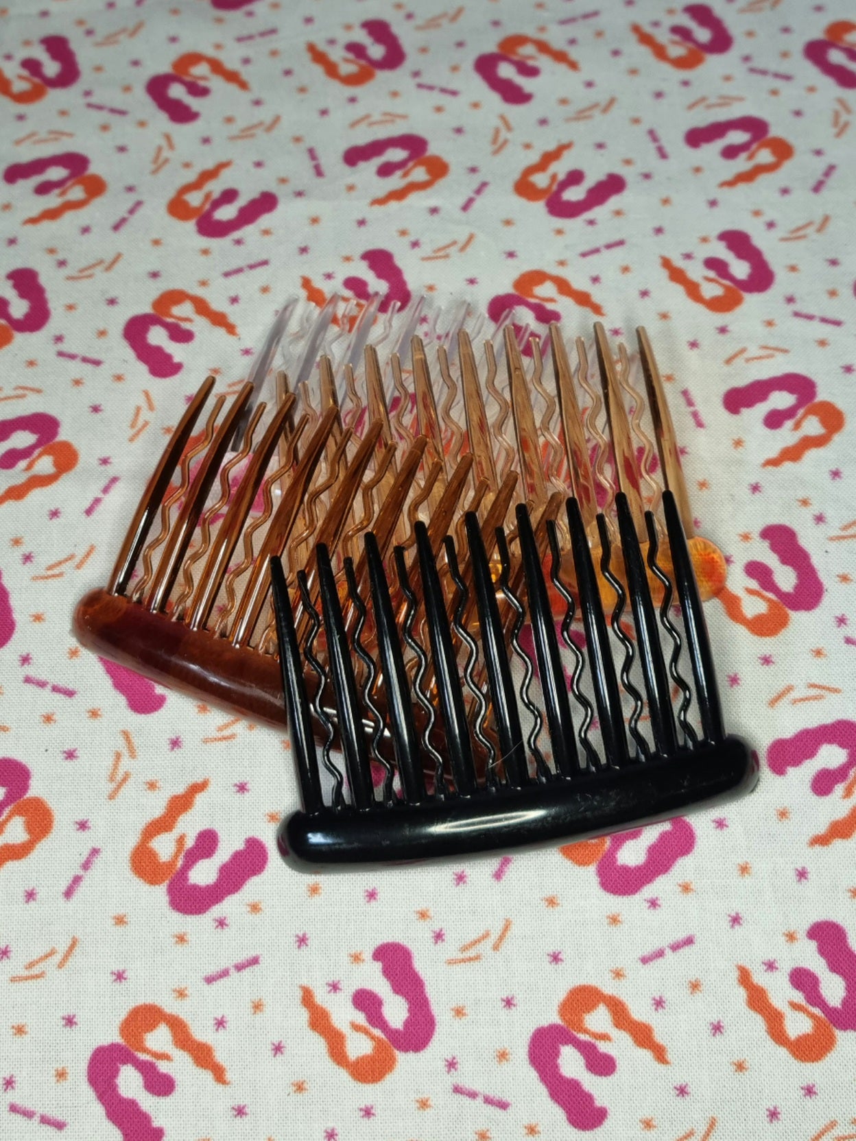 Side combs are a quick and easy way to get your hair out of the way, but they're a lot more versatile than that! Create faux victory rolls with a little backcombing and a side comb to push your hair forward, or use them underneath heavier hair ornaments to keep them from sliding around