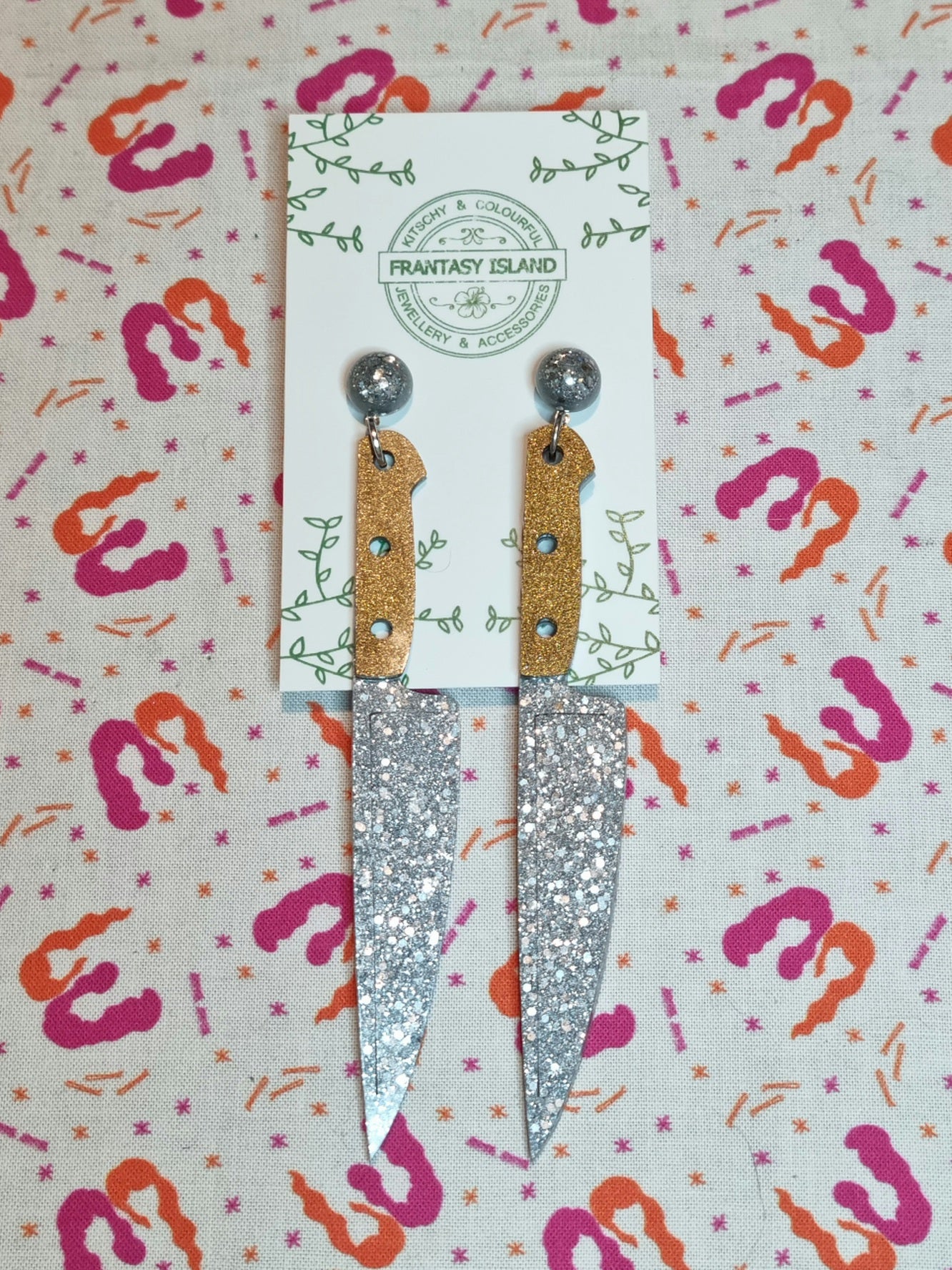 These knives are made from swirly shimmering silver glitter and brown resin, and are truly perfect for any occasion