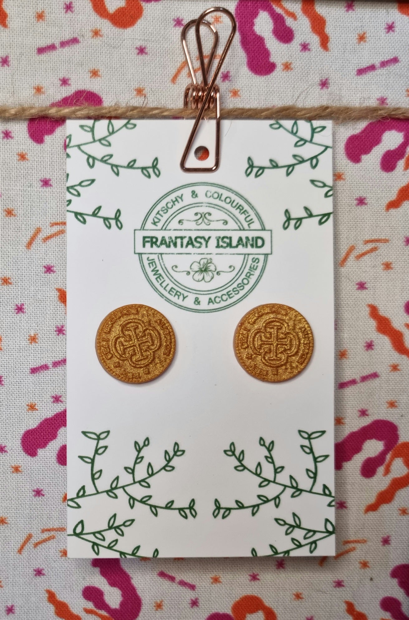 These gold dublooon studs are pretty blimmin' cute really, regardless of whether you pillaged them or paid for them - Perfect for any occasion.