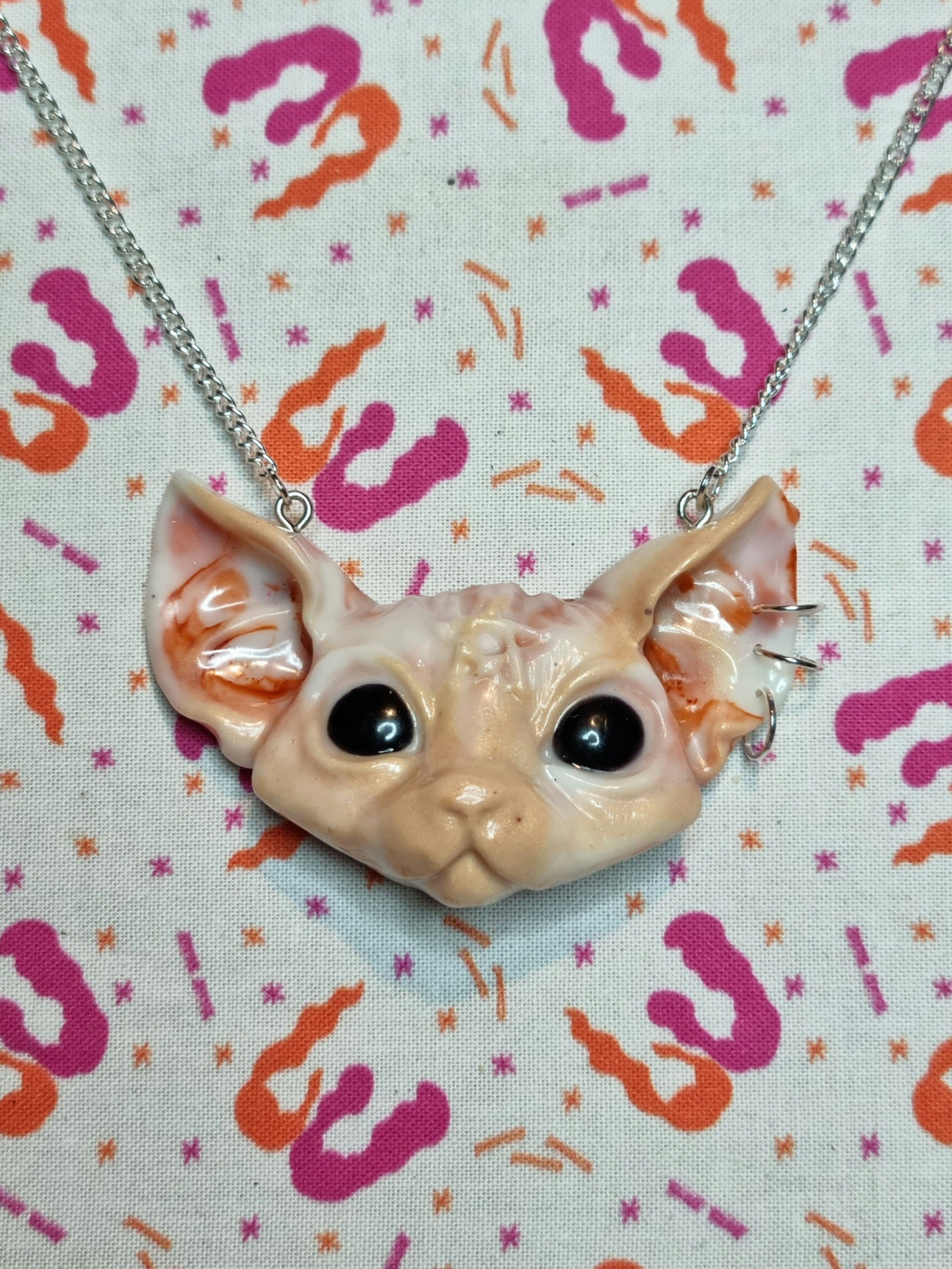 Celebrate these creepy adorable little goblin creatures with your very own naked cat necklace