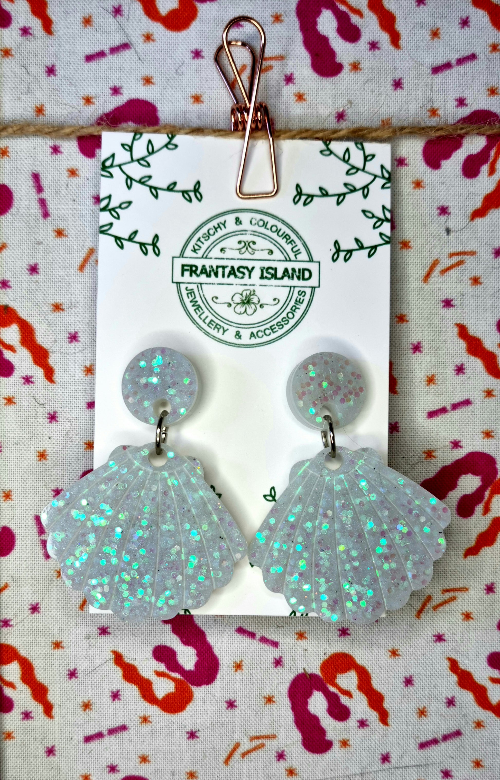 Sparkly and spectacular iridescent glitters set in shimmering ivory resin shells - Perfect for the mermaid on the go!