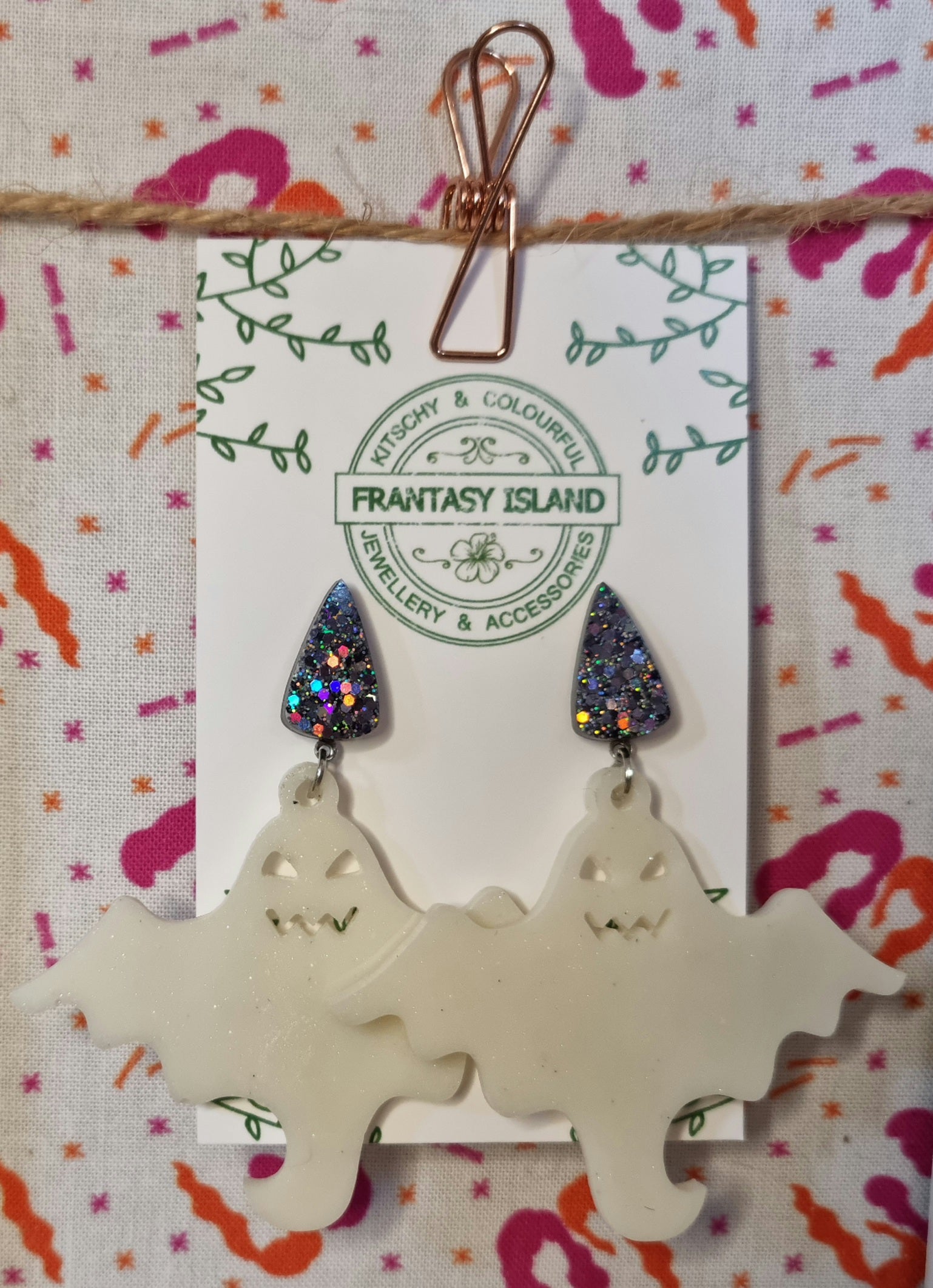 These earrings are sparkly and spooky, with a mix of ivory pigments and glitter in white resin - Perfect for any occasion.