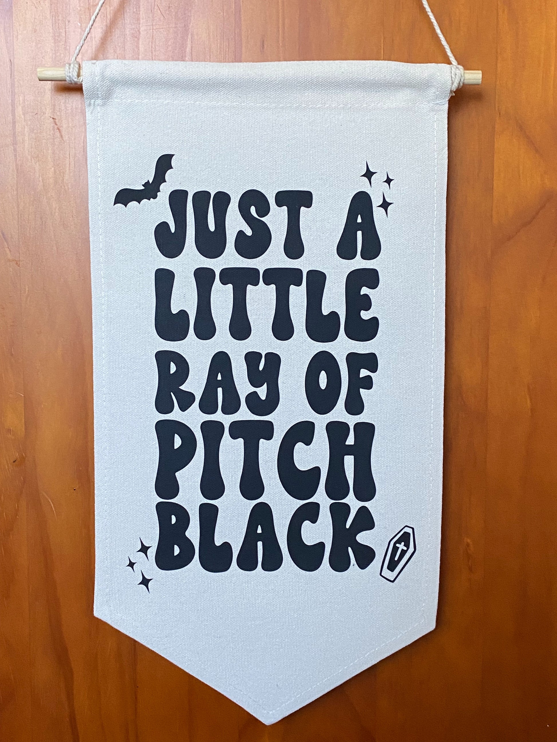 Let your SPOOKY side show with this "just a little ray of pitch black" wall flag. Perfect for adding the right amount of décor to your gloomy abode!