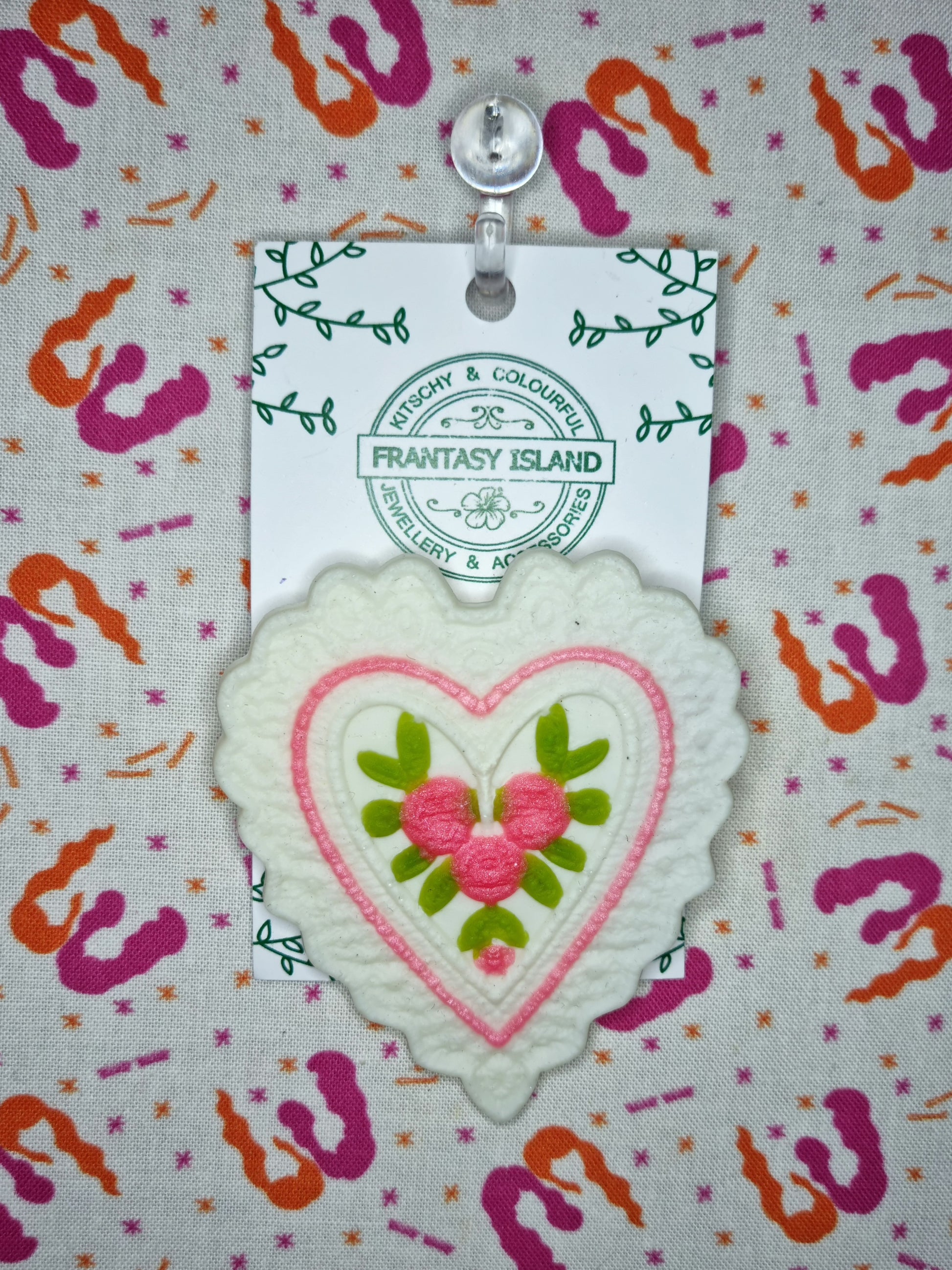Say "I love you" with intricately detailed resin lace heart necklace!