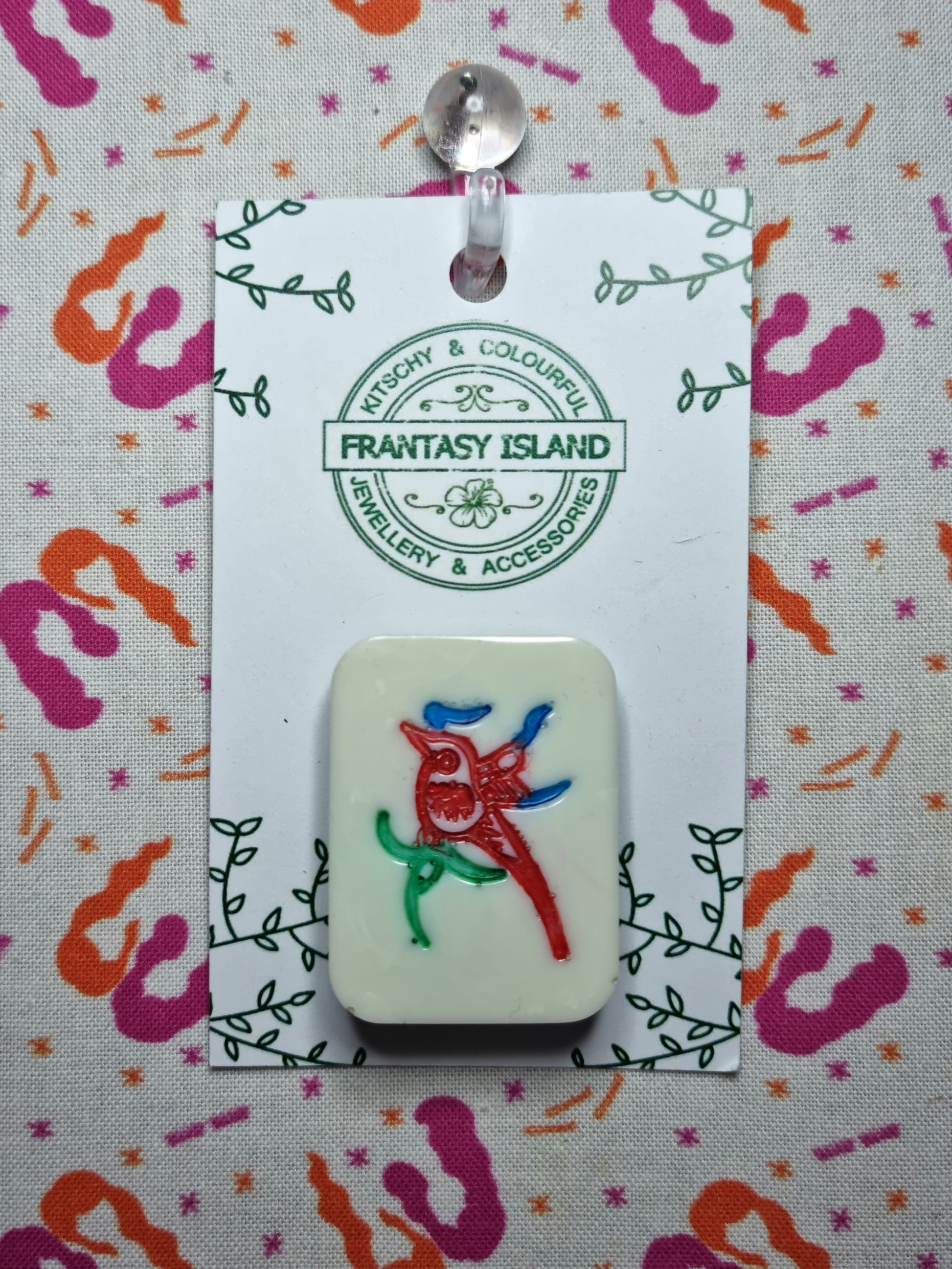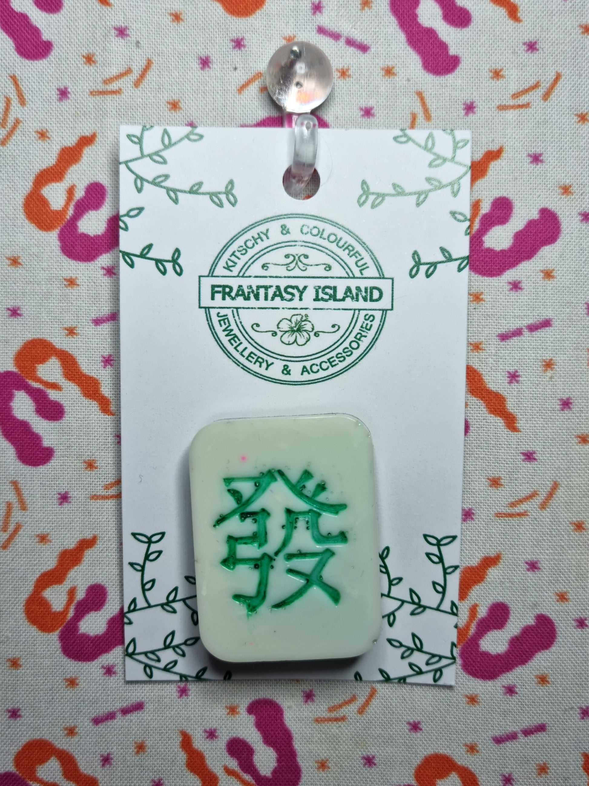 Handpainted and backed in green resin, these mahjong tile brooches really are perfect for any occasion.