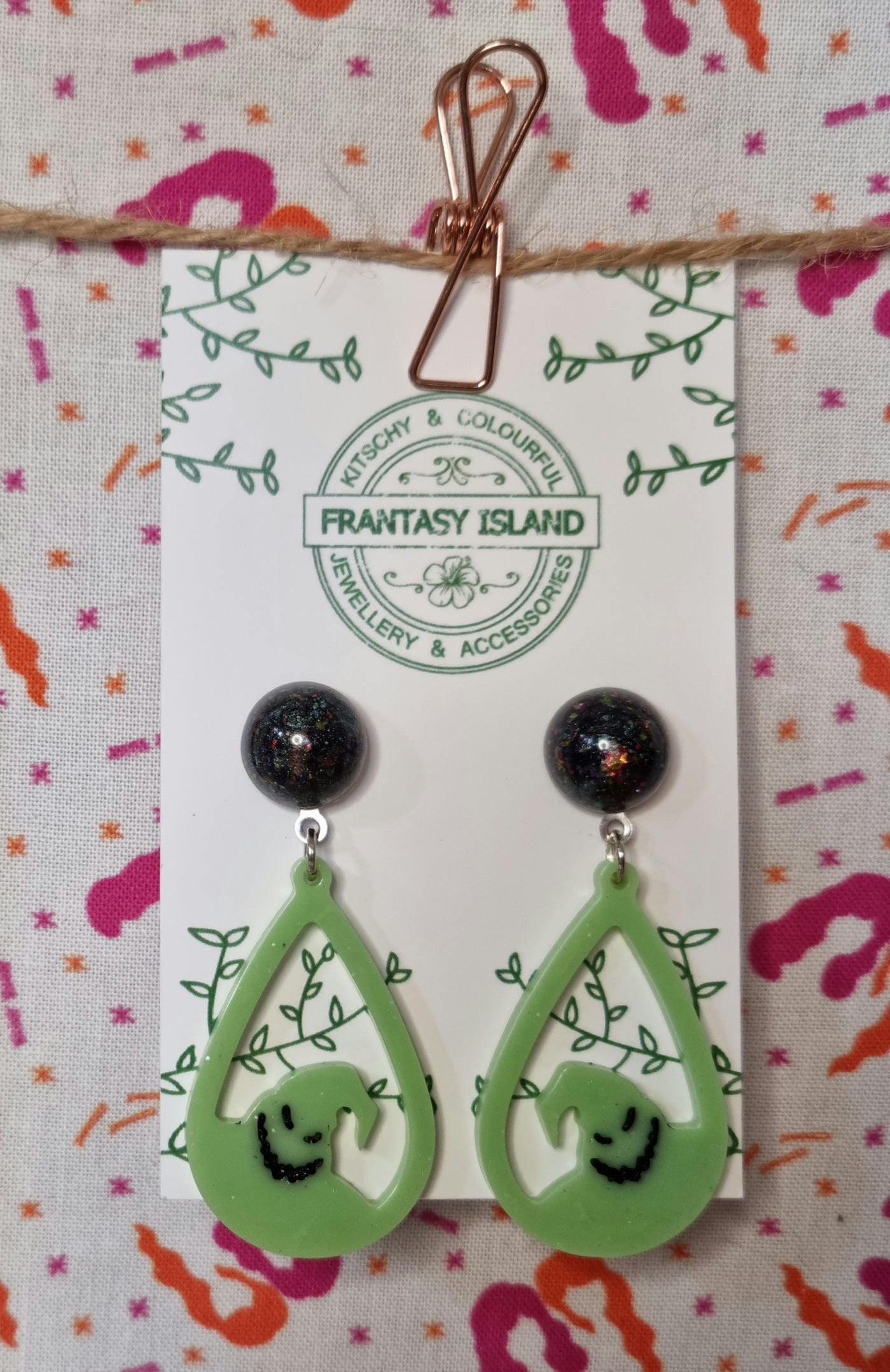These Oogie Boogie silhouette earrings with swirling galaxy domes are pretty blimmin' cool, and the perfect accessory for your next disneybound!