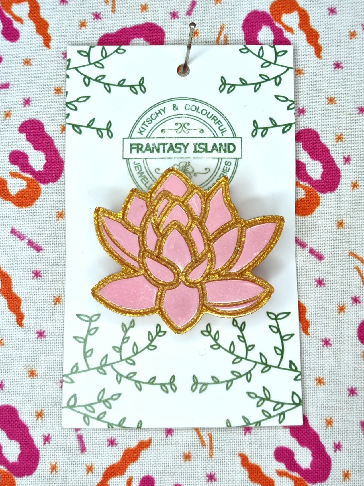 Floral and sparkly, just the way we like it! These lotus pins are super retro and super cute - Perfect for any occasion.