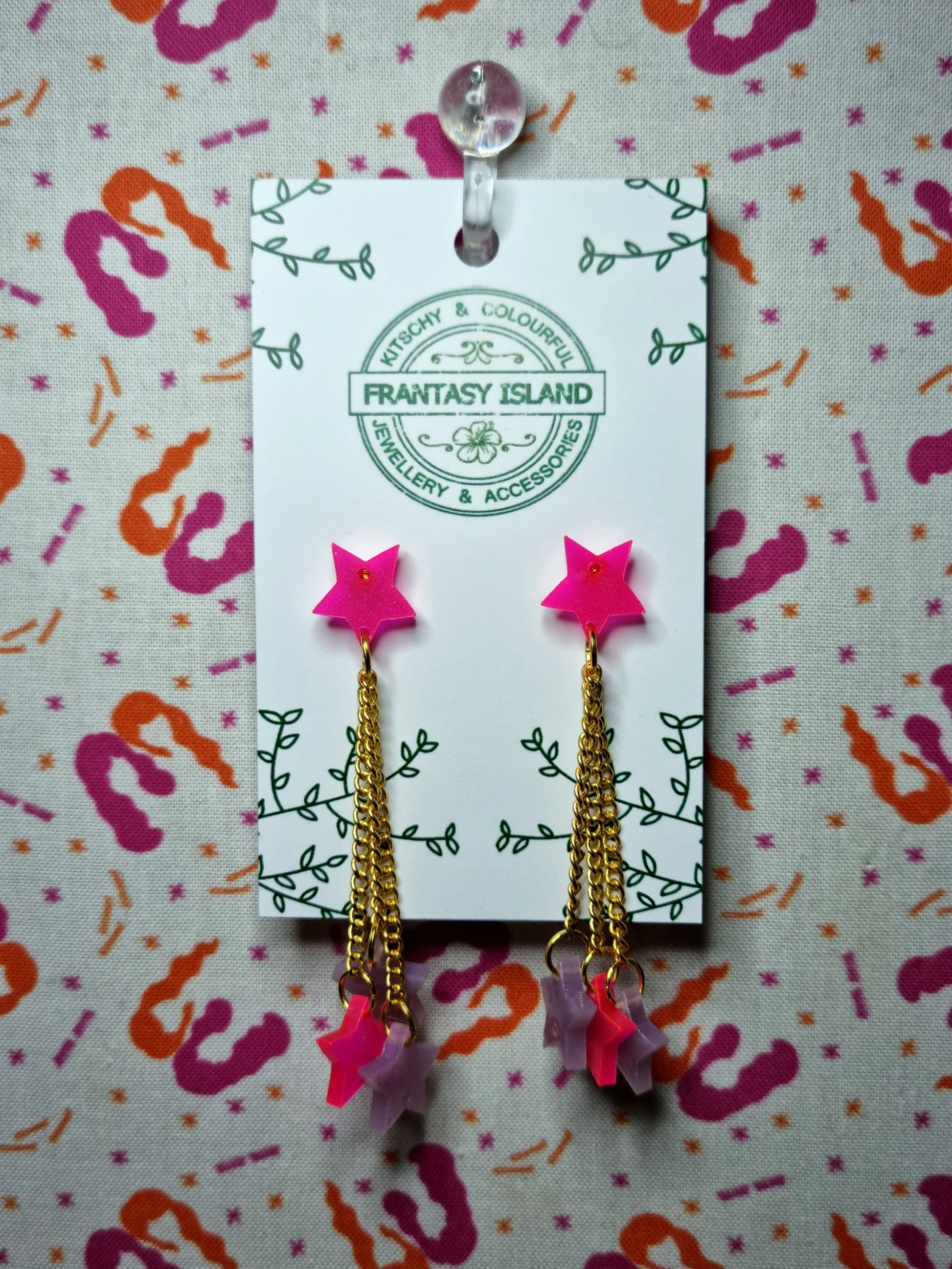 Looking for that star-studded style? These truly truly truly outrageous Jem and the Holograms-inspired earrings will have you shining like the star you are! Perfect for a night out on the town, these stunning retro star clusters are dazzling with their mix of pink, purple and gold. Get ready to glimmer and glam it up!