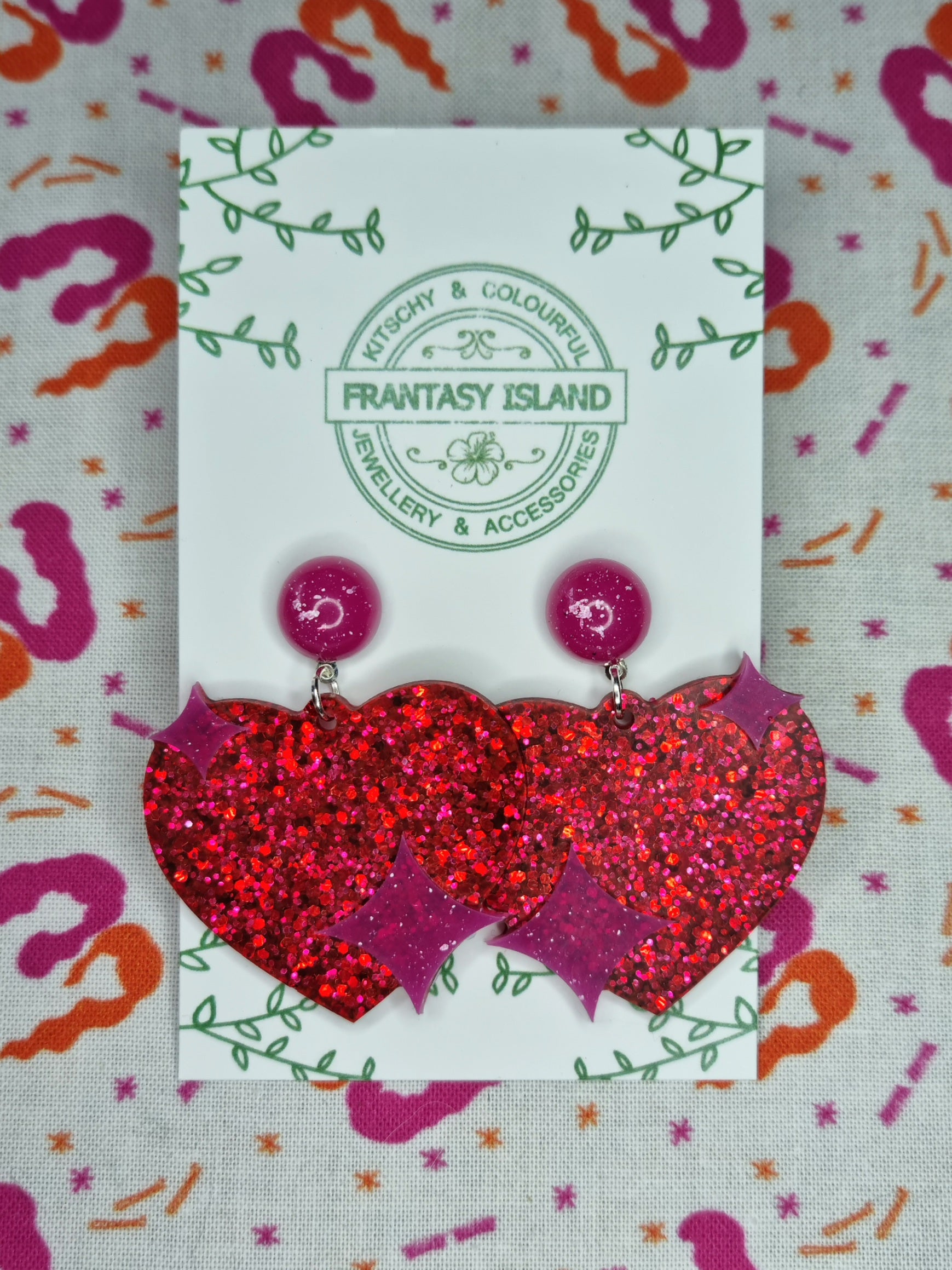 Now, we know we're good at glamorous sparkly things, but we're also really good at quirky sparkly nonsense, and these pink and red heart earrings are exactly that - Sparkly nonsense, perfect for any occasion