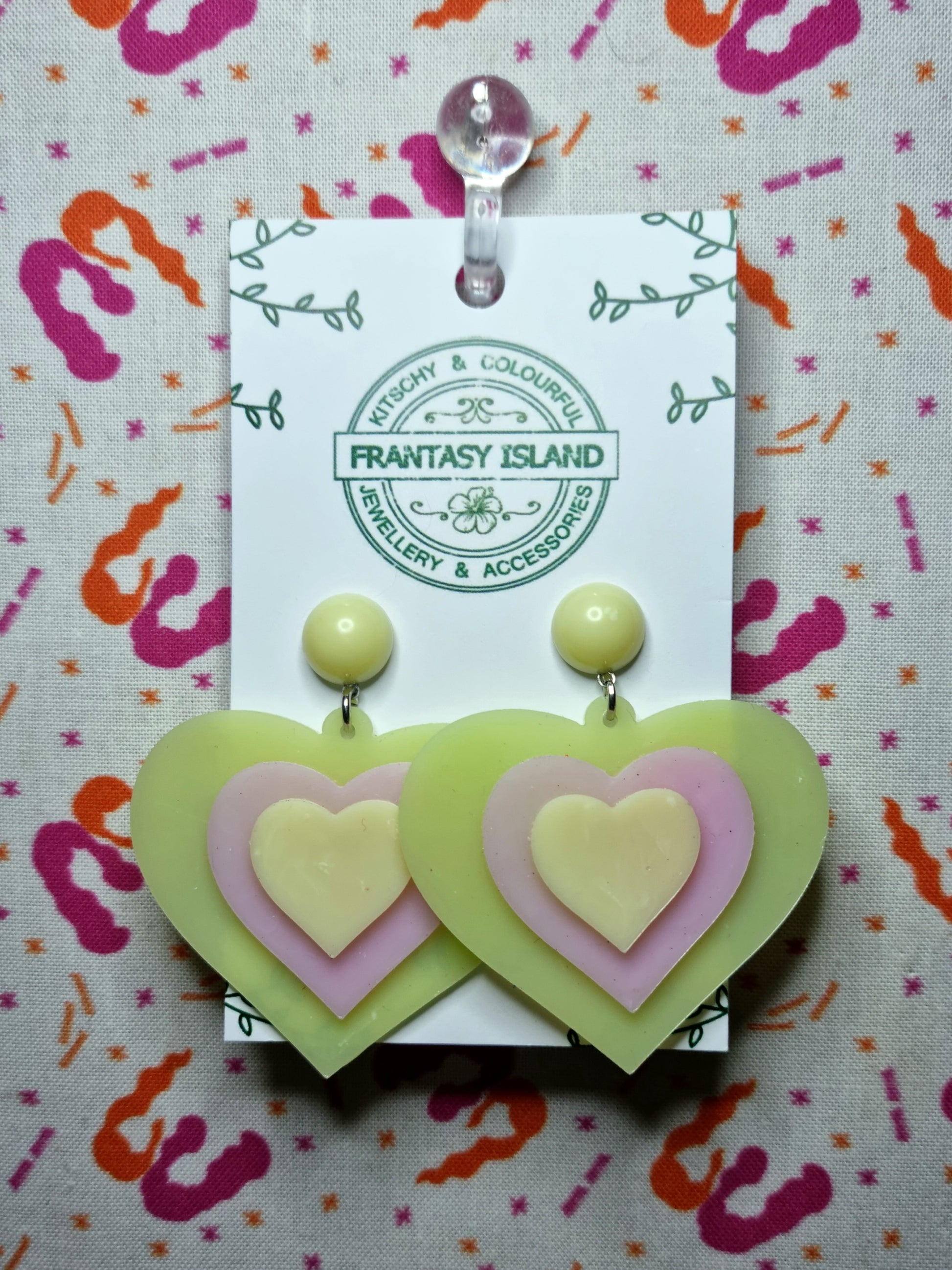 Let your style stack up with these pastel stacked heart earrings! Crafted with resin and featuring a pastel trio of mint, lilac, and sunshine yellow, these earrings will give you ALL the heart-felt feels. Show your love for fashion (and hearts!) with these sweet earrings!