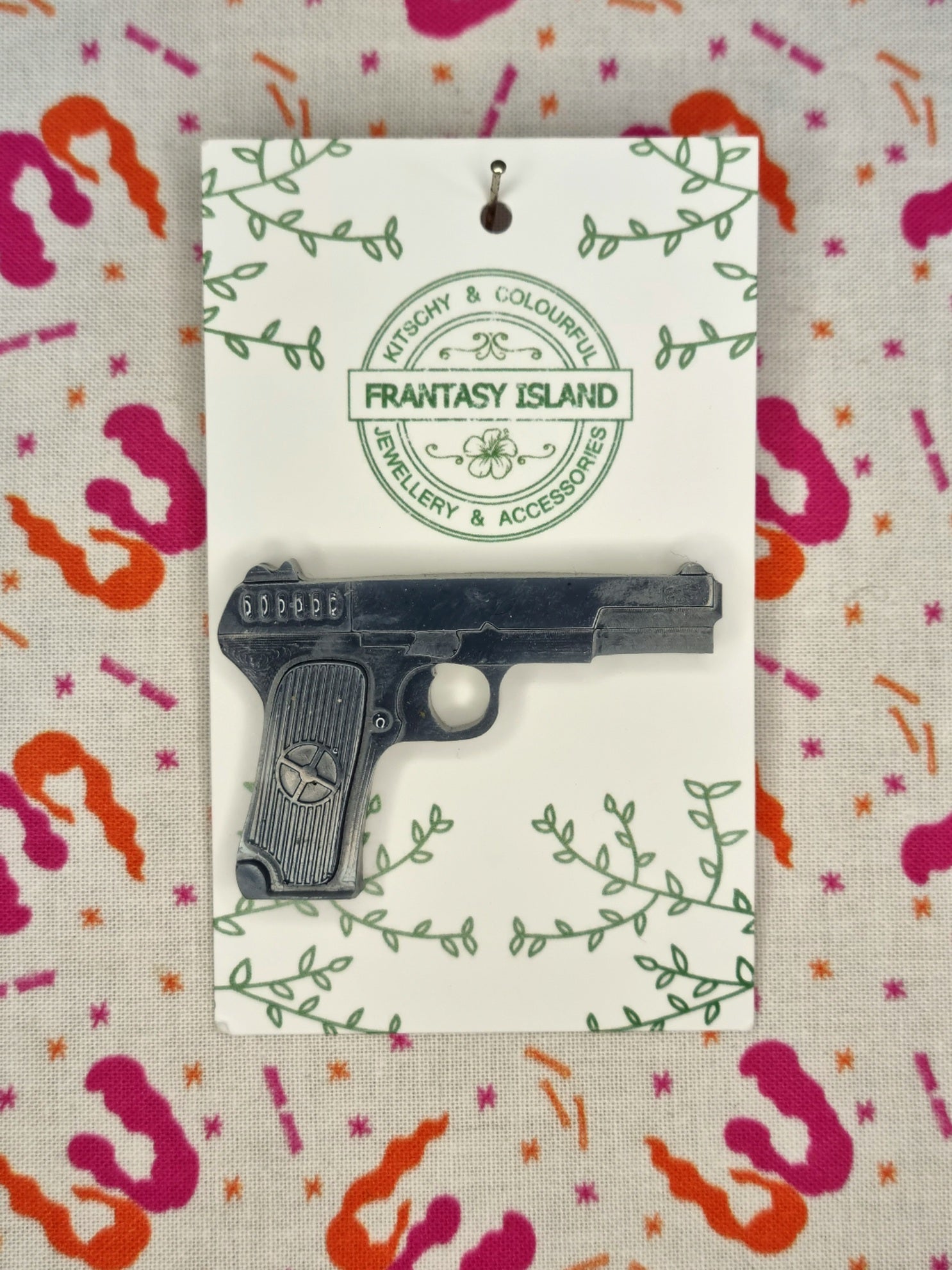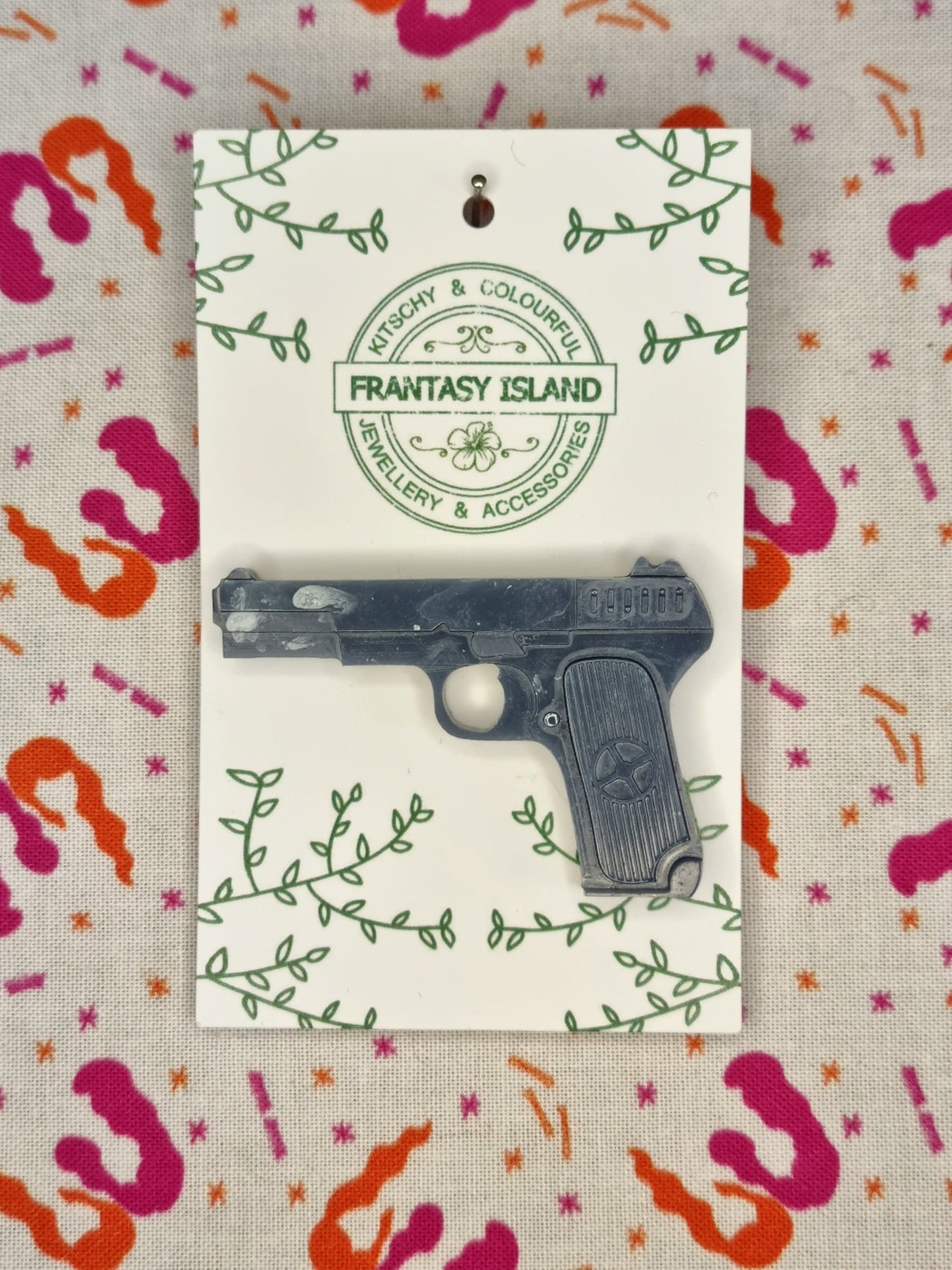 These pistols are made from swirly shimmering metallic silver resin, so are all going to have a slightly different finish, please bear that in mind when ordering!