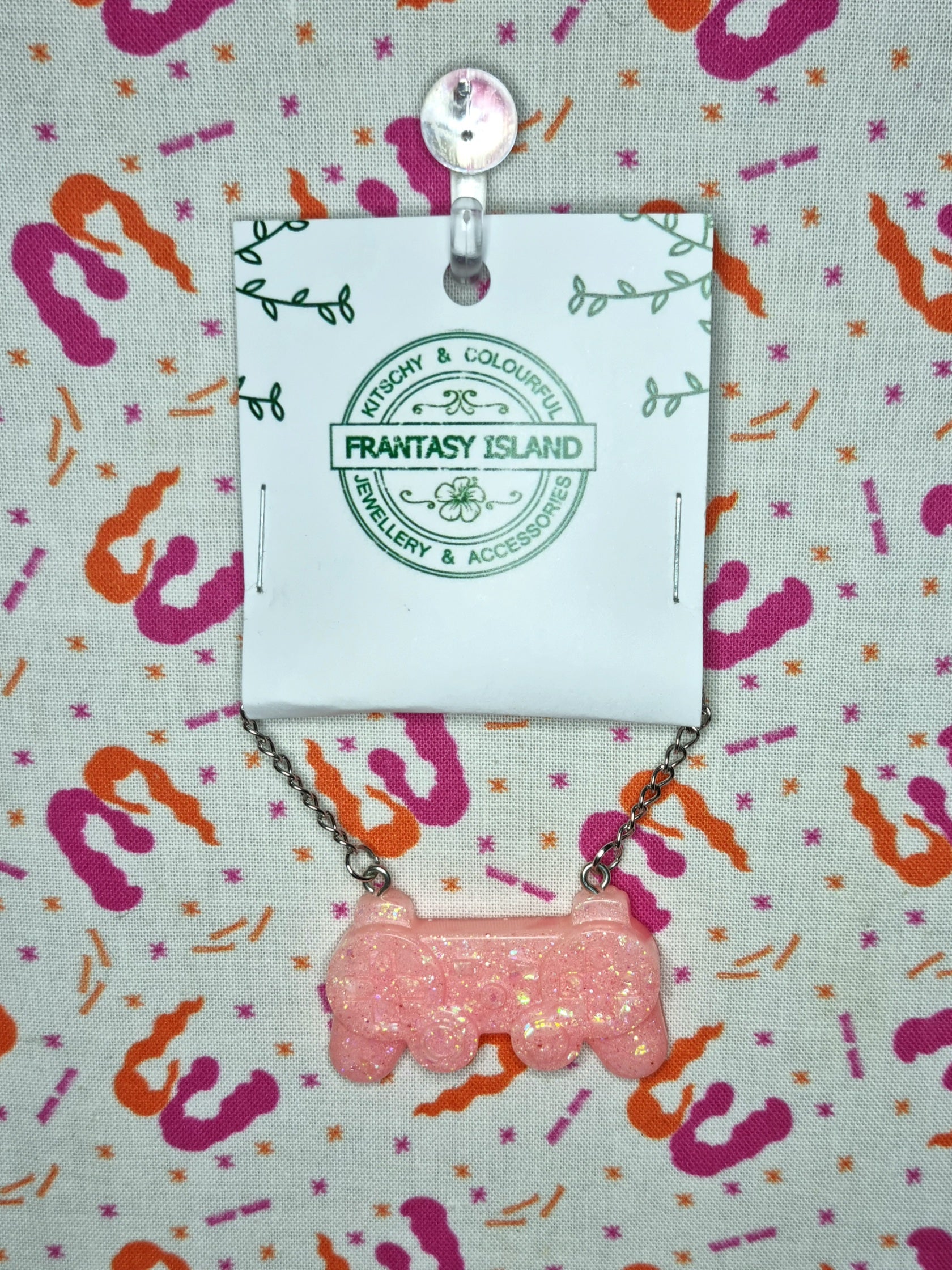 The war of the console gamers is decades old, so stake your claim and choose your side with this sparkly pink PlayStation controller necklace!