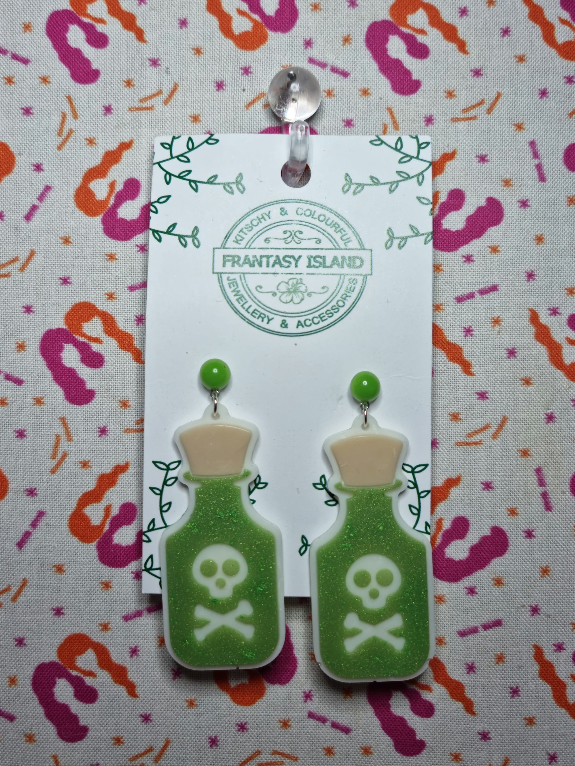 Crafted with sparkling green and gold resin, complete with a spooky skull and crossbones (so you know they're dangerous) you'll have onlookers green with envy. Guaranteed to add a deadly dose of charm to any ensemble!