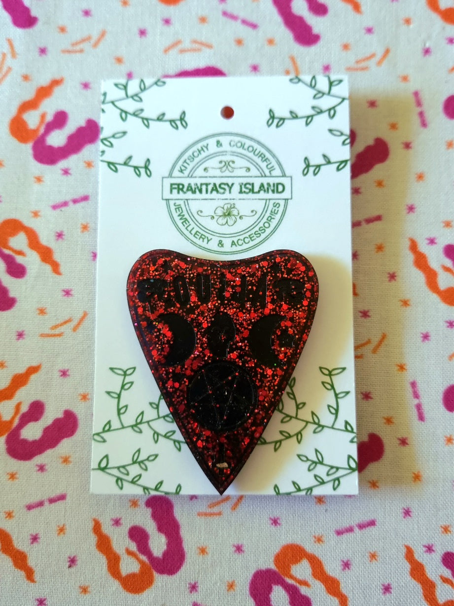 Red & Black Glitter Planchette Brooch