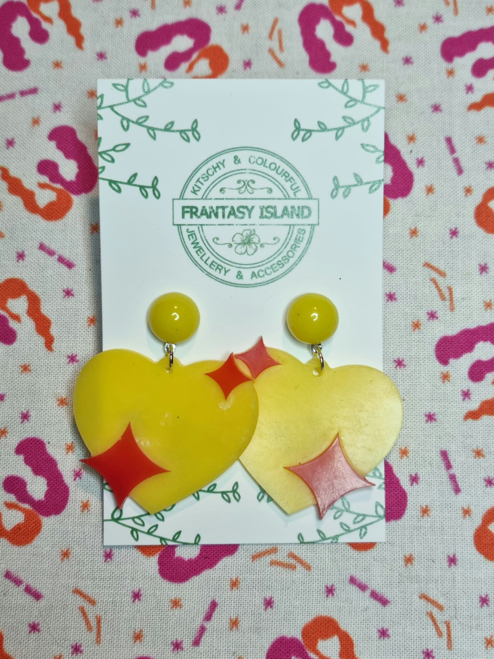 Now, we know we're good at glamorous sparkly things, but we're also really good at quirky sparkly nonsense, and these pink and red heart earrings are exactly that - Sparkly nonsense, perfect for any occasion