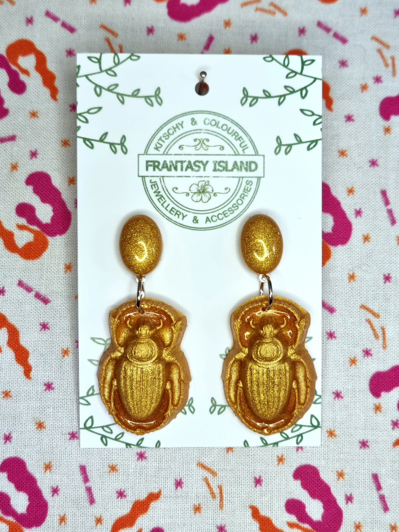 These scarab beetle drop earrings are a work of art, if we do say so ourselves, so we know you won't want to miss out on adding them to your collection - Whether you're an egyptophile or just really like bugs!