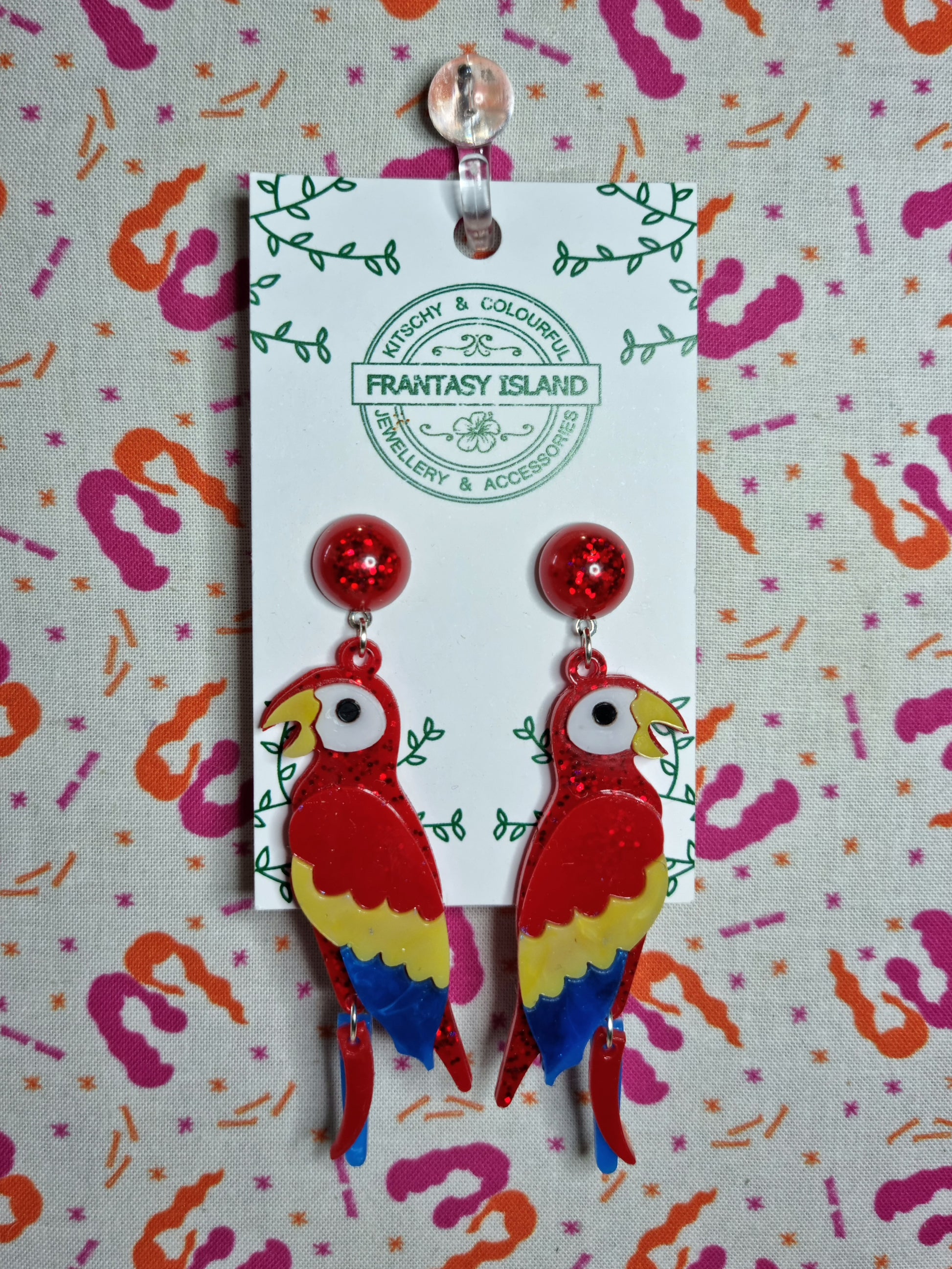 Take flight and make a statement with our eye-catching scarlet macaw earrings! Enjoy the beauty and captivating vibes of the tropics without ever having to leave your home! 🦜