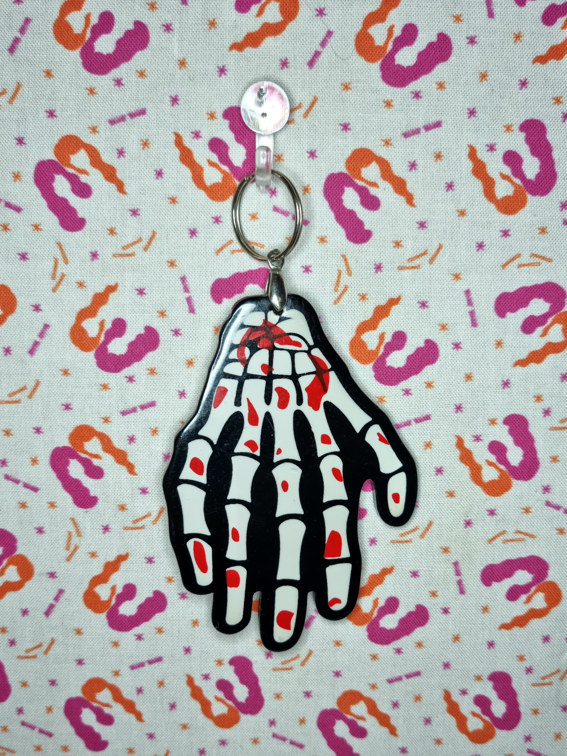 Keep your keys in the palm of your Skeleton Hand Keychain! This bony accessory is a perfect match for any spooky setting, and its bright blood-red accent adds a touch of horror to your keyring. Unlock the creepiness!