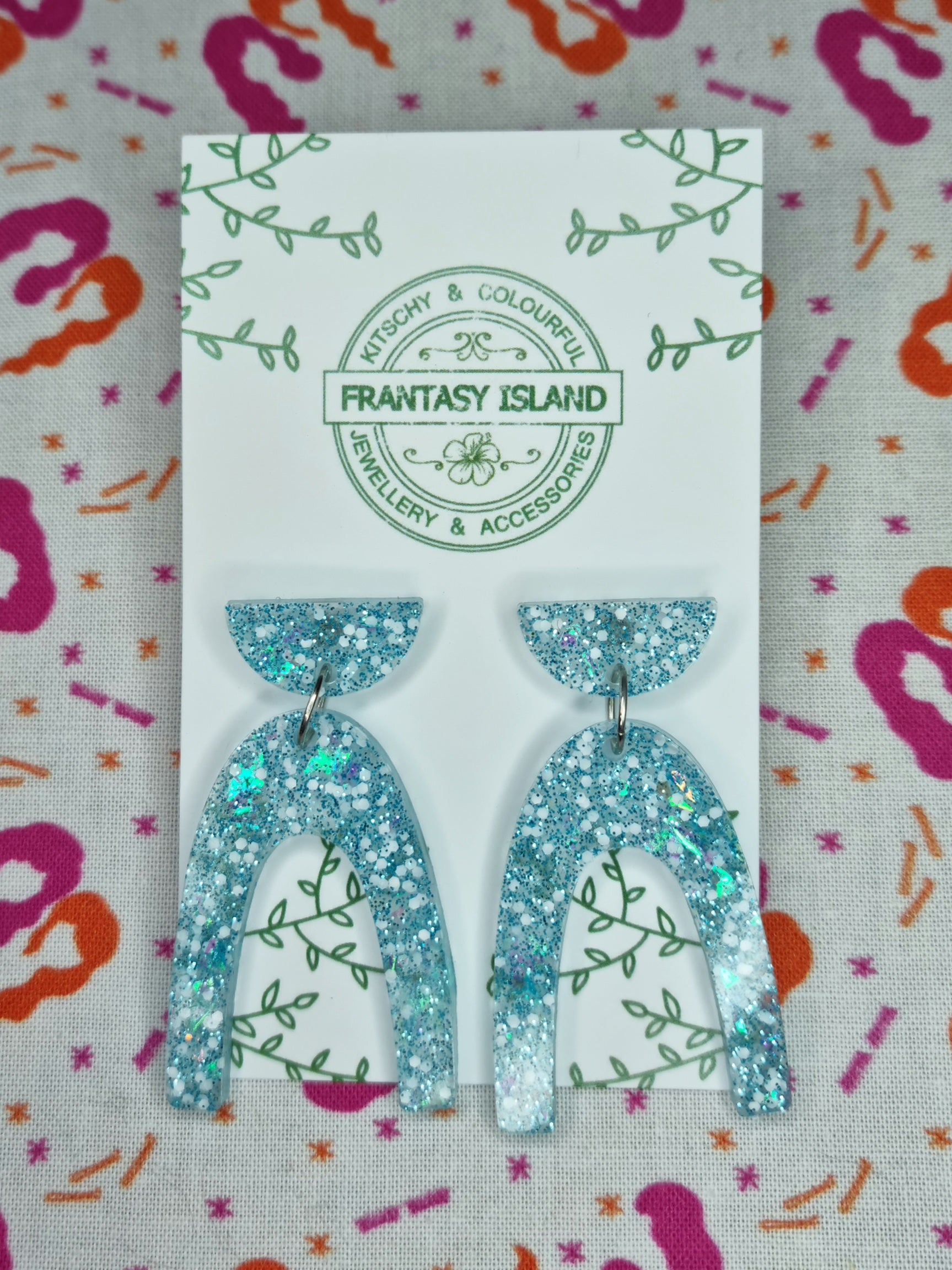 These earrings have a subtle retro shape, full of white 'snow' confetti, and our 'Winter Wonderland' glitter blend set in clear resin - Perfect for any occasion.