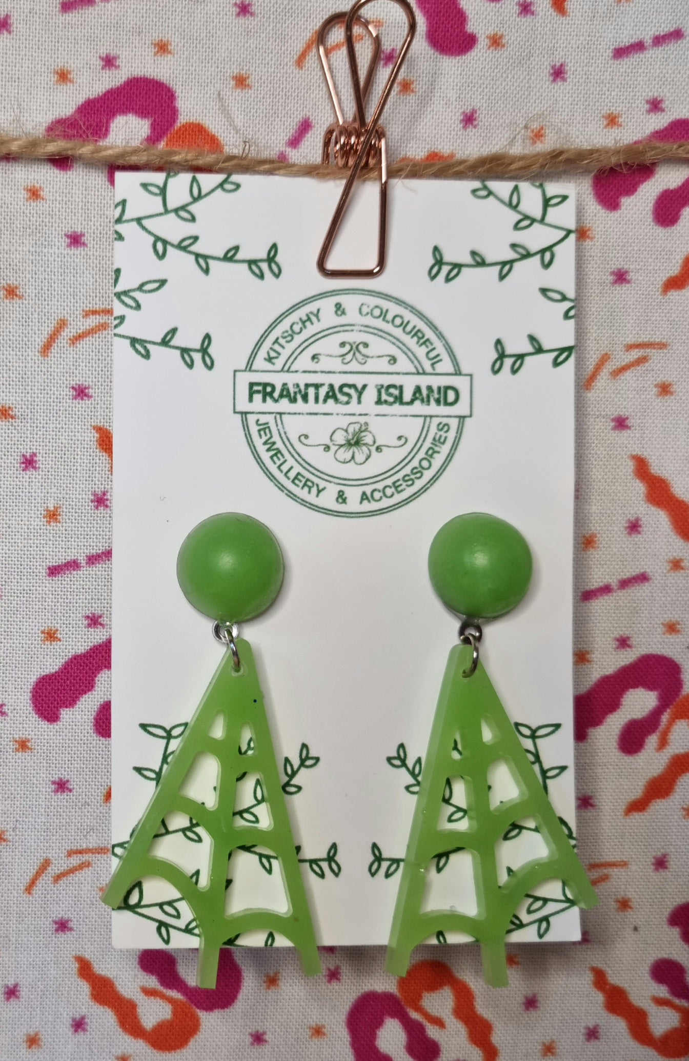 These soft green spiderweb earrings are spooky and spectacular - Perfect for any occasion.