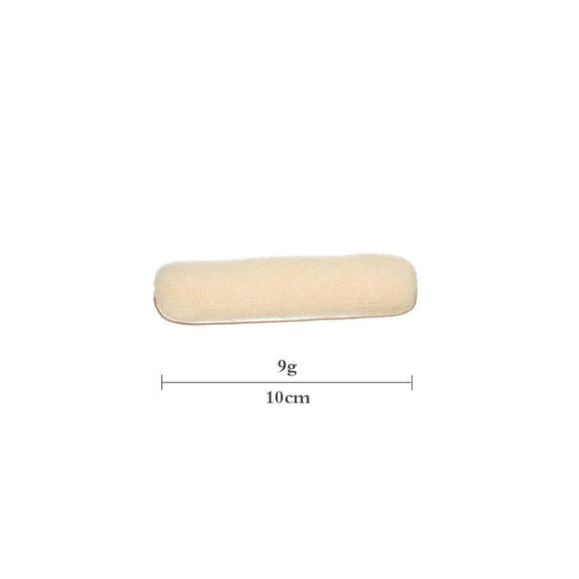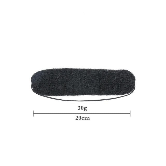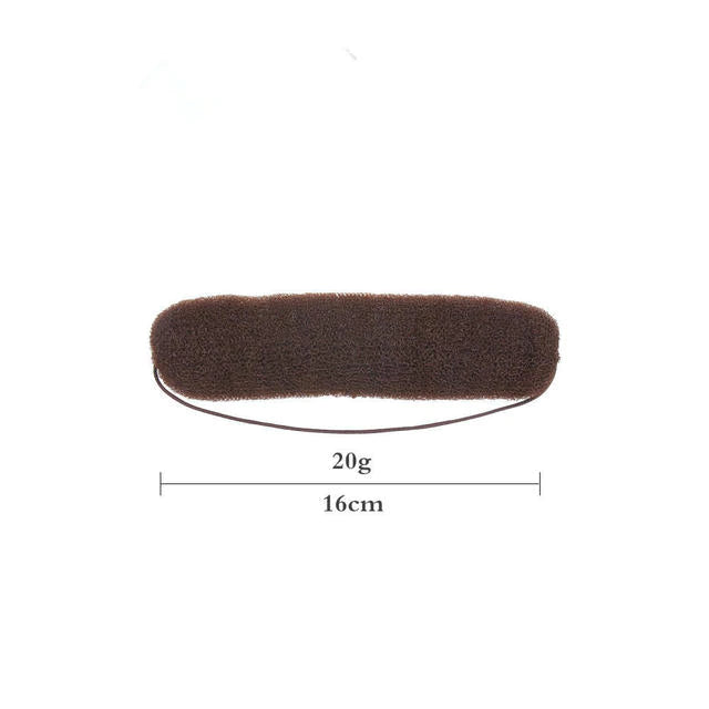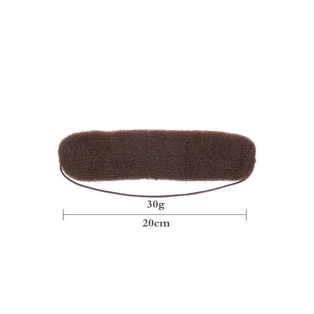 These straight / cylindrical hair fillers have a thin elastic strap and can be used to boost beehives, bumper bangs, and gibson rolls, or tied closed to be used as a ballerina bun filler!