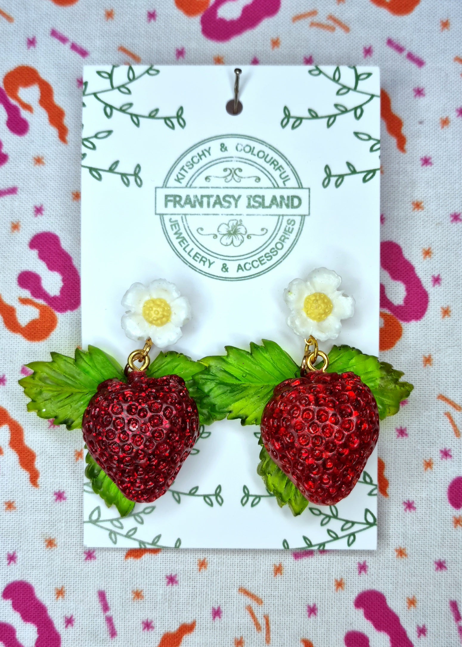 Made with green resin leaves, red glitter resin strawberries, and white and yellow resin flower domes these really are perfect for any occasion.
