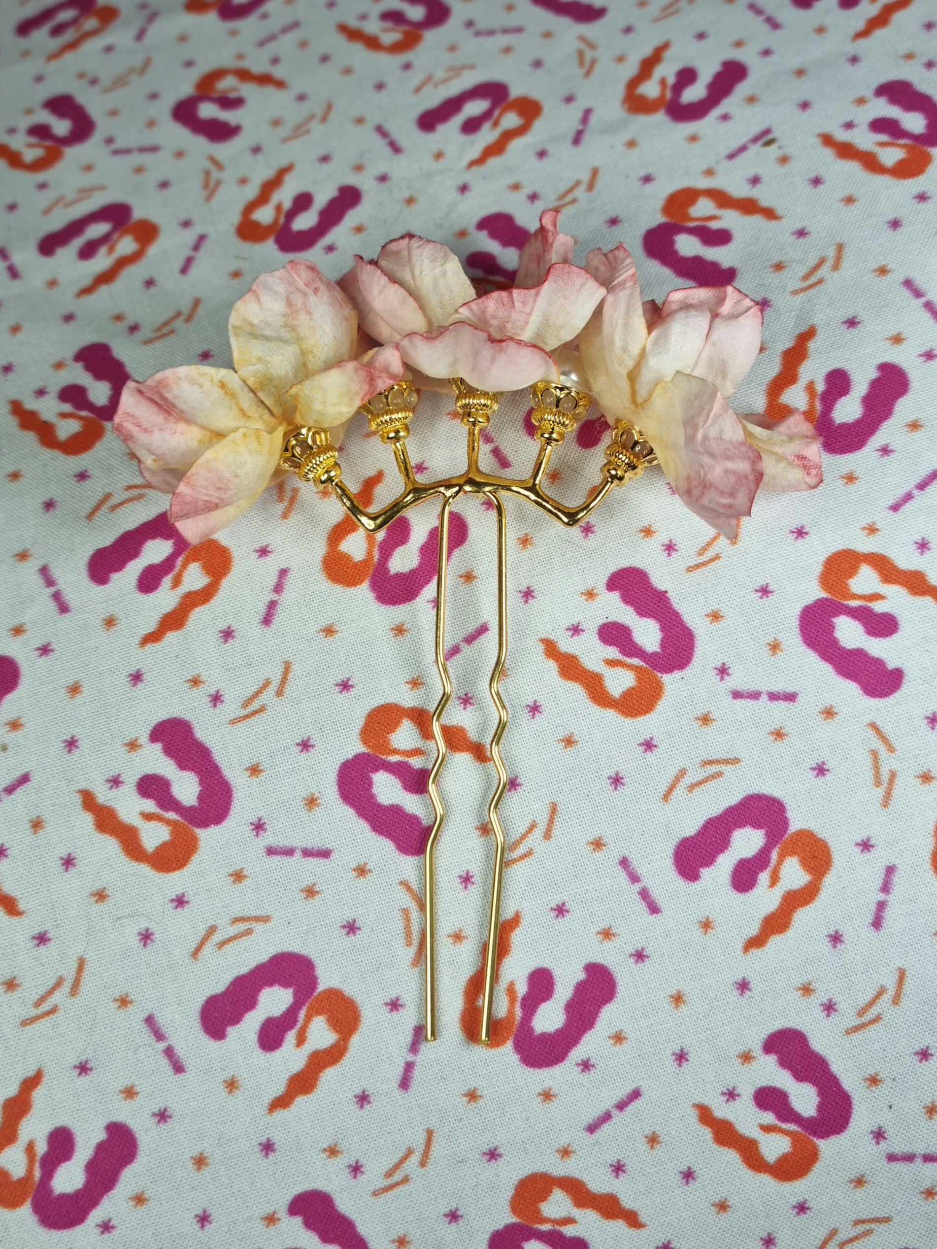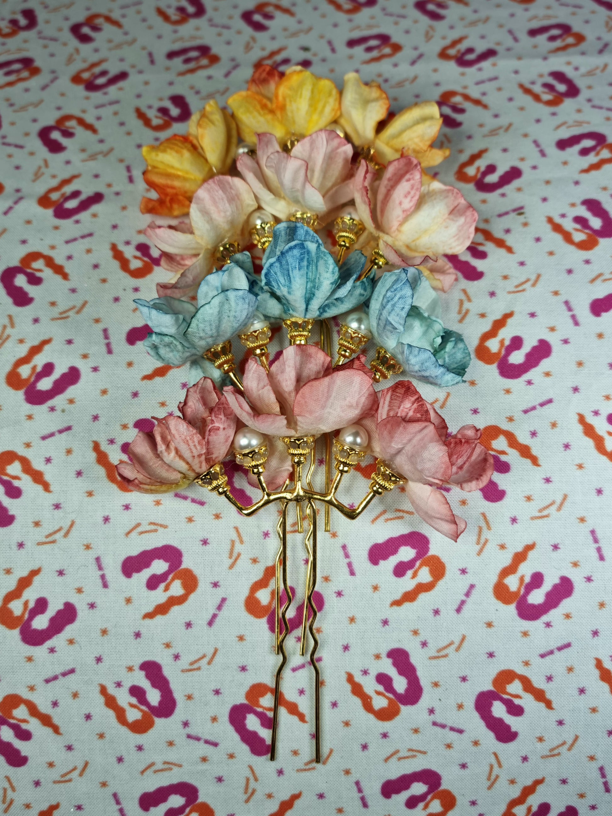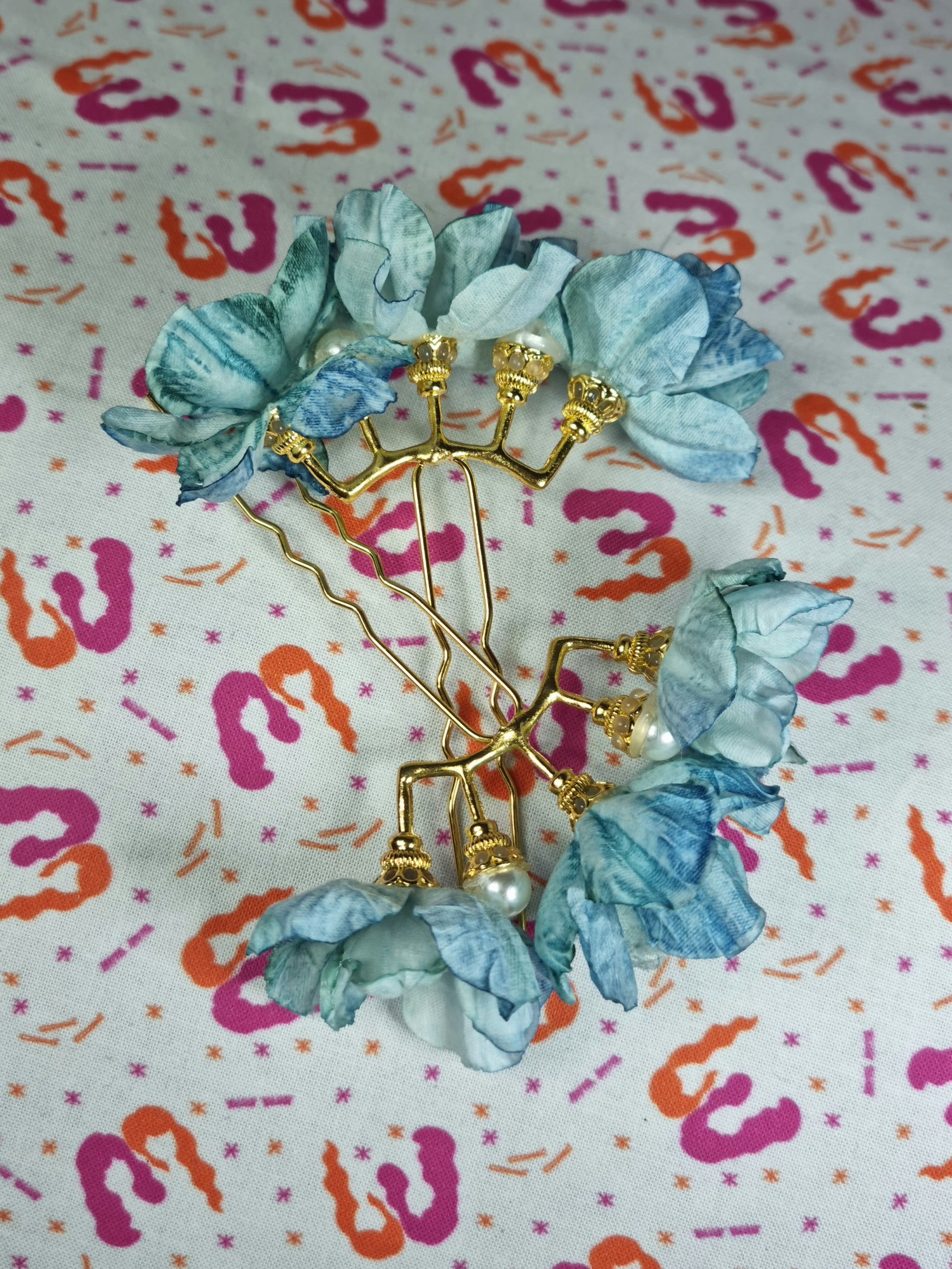 These gorgeous floral pins are accented with pearls and come in blue, blush, pink, and yellow, and can be combined to create a large focal piece, or worn independently for just a touch of glam. They'd be an excellent addition to a formal or bridal look, or a nice way to accessorise your bridesmaids with slightly different but perfectly coordinated hair pieces, and we can't wait to see how our clients style them!