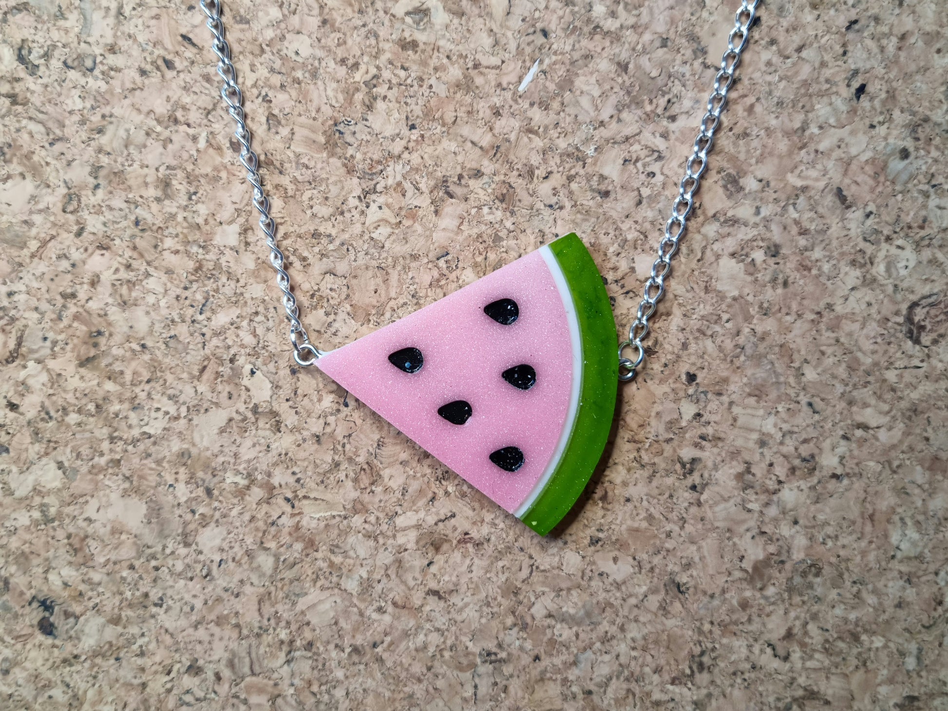 This Watermelon Slice necklace is the perfect addition to your summer outfits, or for dreaming about summer when the dark times hit and the sun abandons us for a few devastating months of the year...