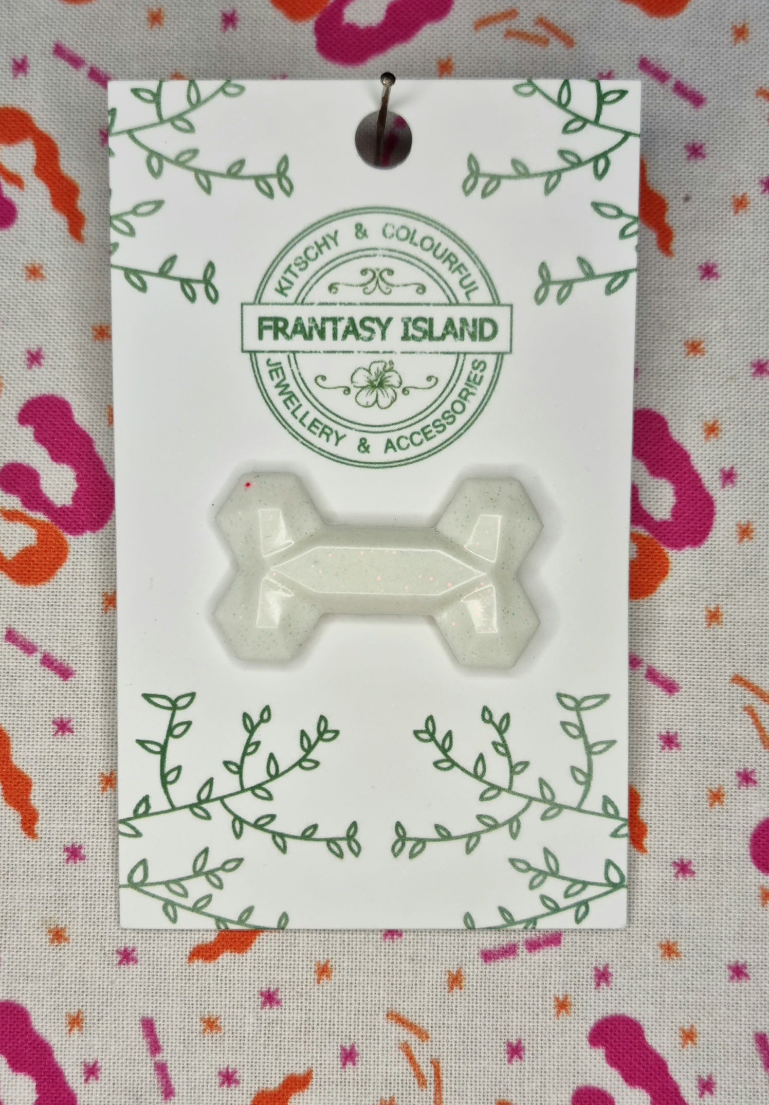 Spooky and spectacular, these sparkly bone pins are glossy and shiny and so much nicer looking than your actual bones would be - Perfect for any occasion.