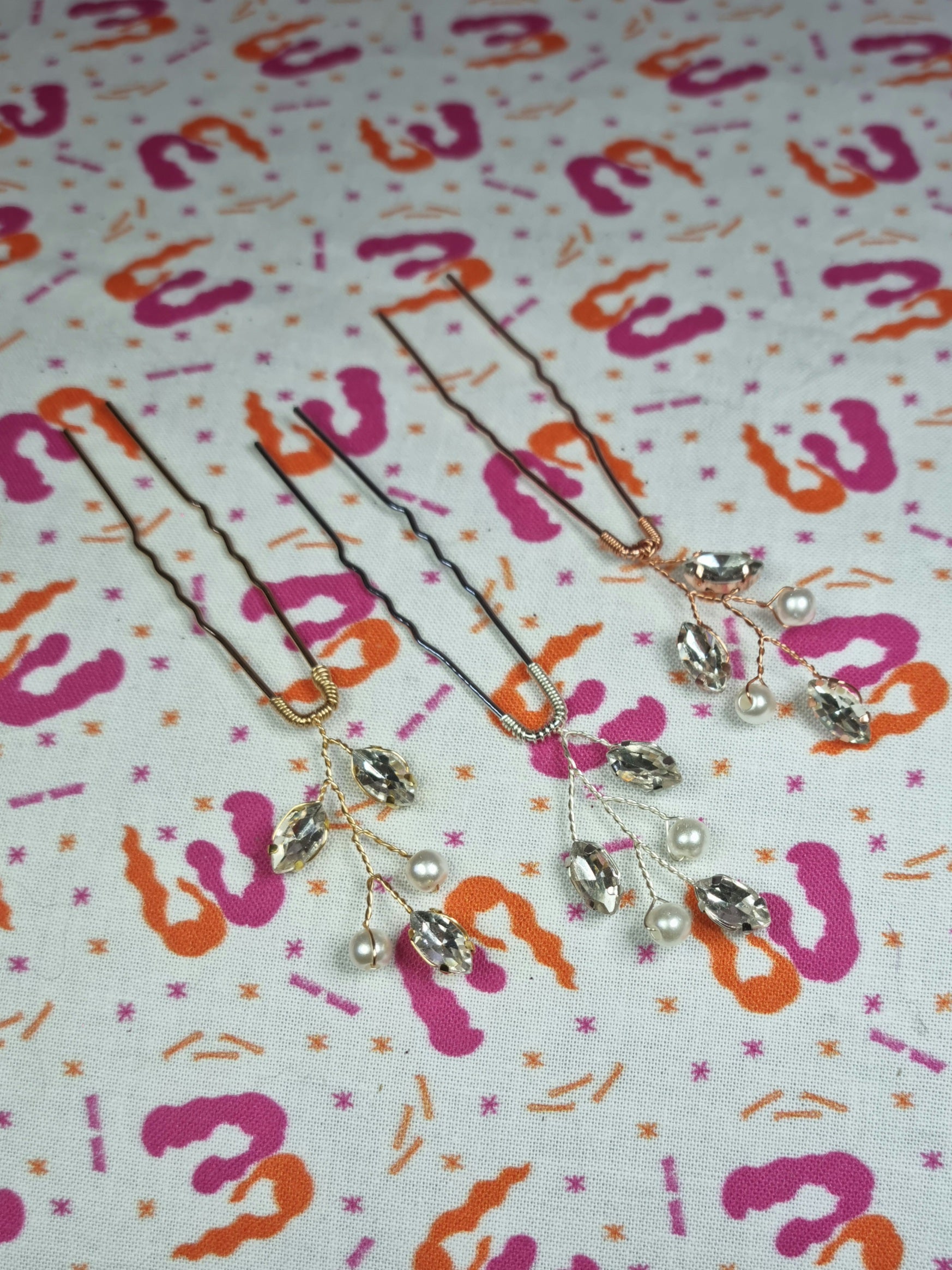 Wired Diamante & Pearl Hair Pins